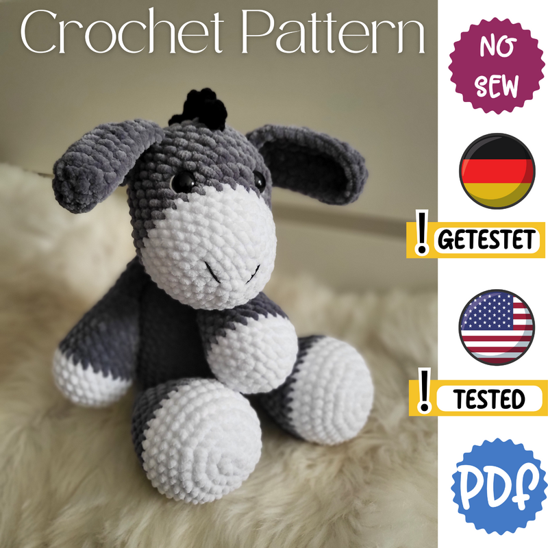 With these detailed instructions you can conjure up a cute crocheted donkey - and the best part: you don't need any sewing skills! All the pieces are crocheted directly onto each other, so that in the end you get a seamless, perfectly connected result.