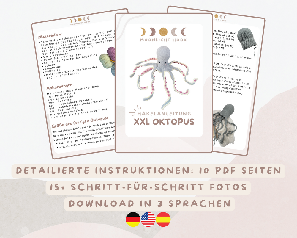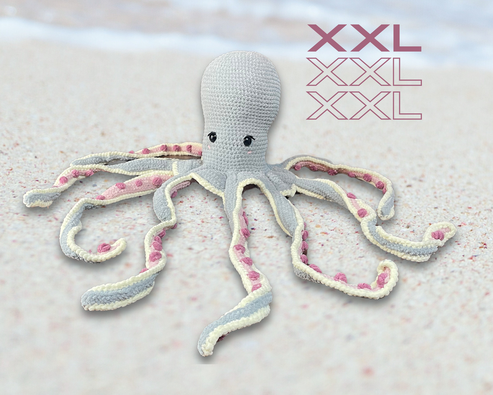 Discover the extraordinary crochet pattern for this XXL octopus, which reaches an impressive size. This adorable octopus is something truly special and a real highlight for your crochet collection. The detailed pattern guides you step by step through the entire crochet process, allowing you to create this unique, cuddly octopus at your own pace. Whether as an exceptional gift or a special piece for your own collection – this sleeping XXL octopus is sure to delight. Let your creativity flow and bring this dreamy octopus to life!
