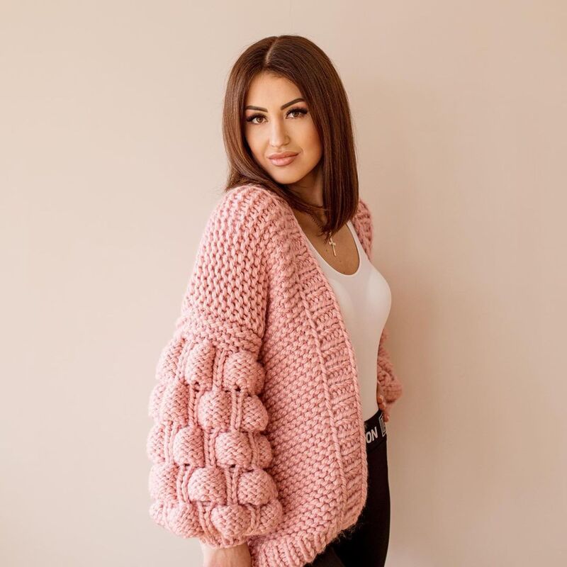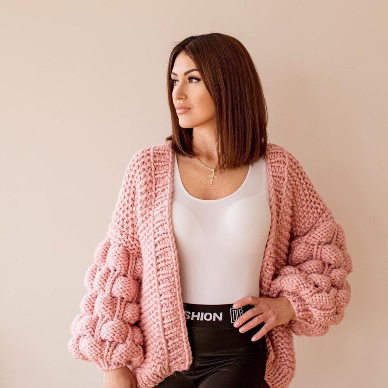 Chunky knit cardigan is perfect for any outfit. Also, a hand-knitted cardigan is great for any of your looks. The cardigan could be worn with a dress, jeans, as well as a wedding jacket.