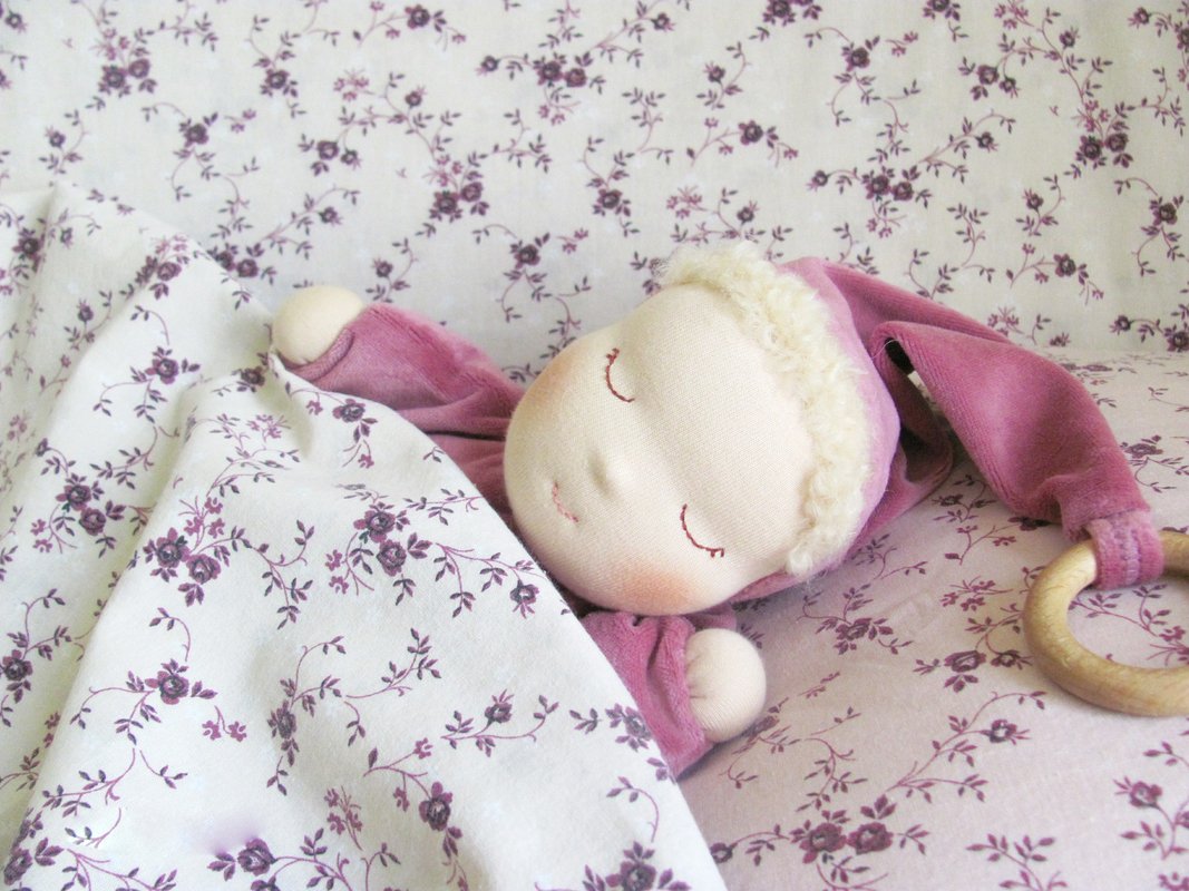 cotton velour for body, cotton doll jersey for head, sheep wool for filling