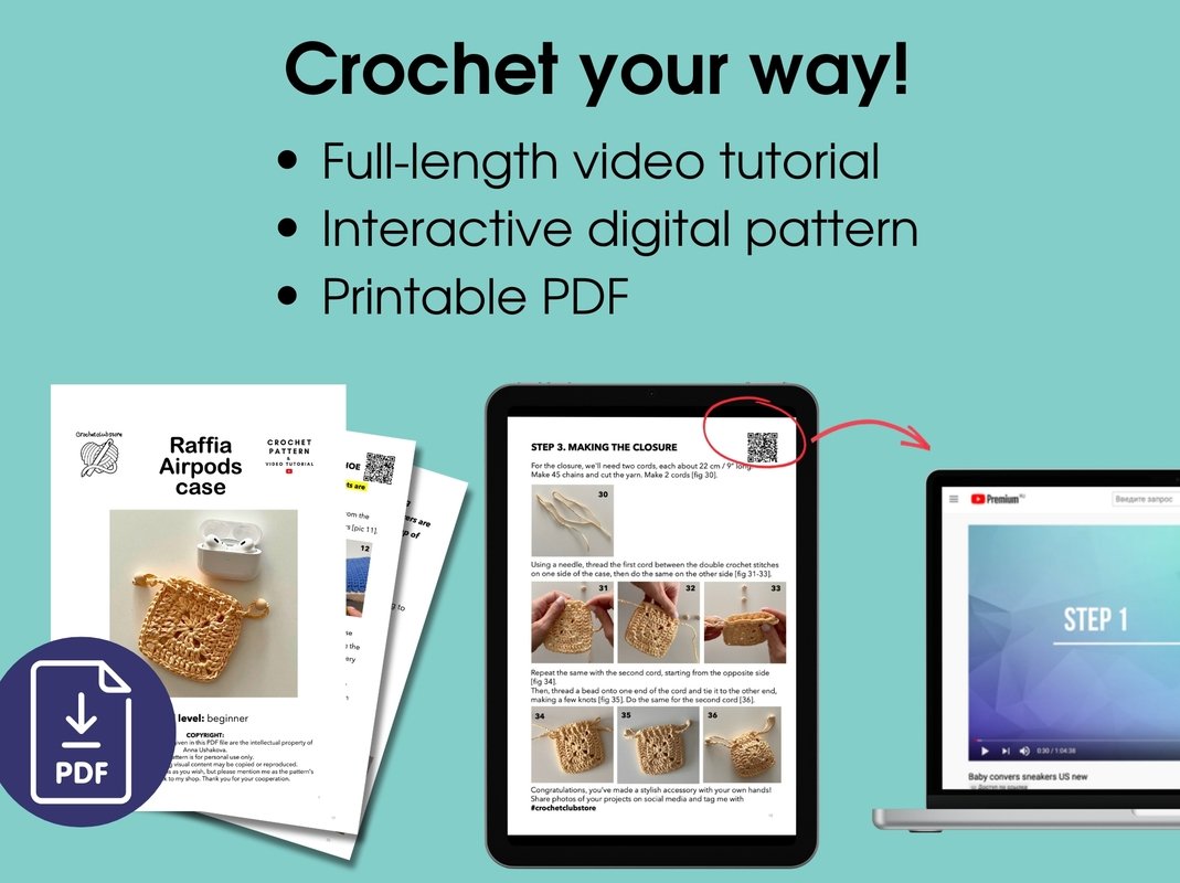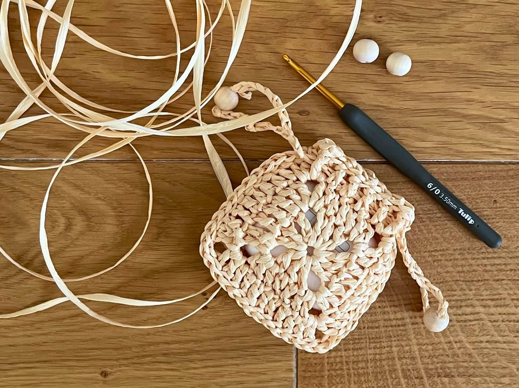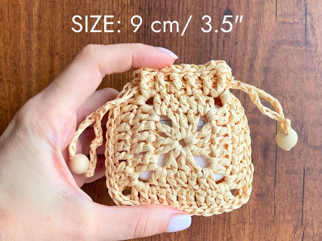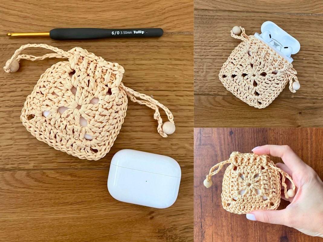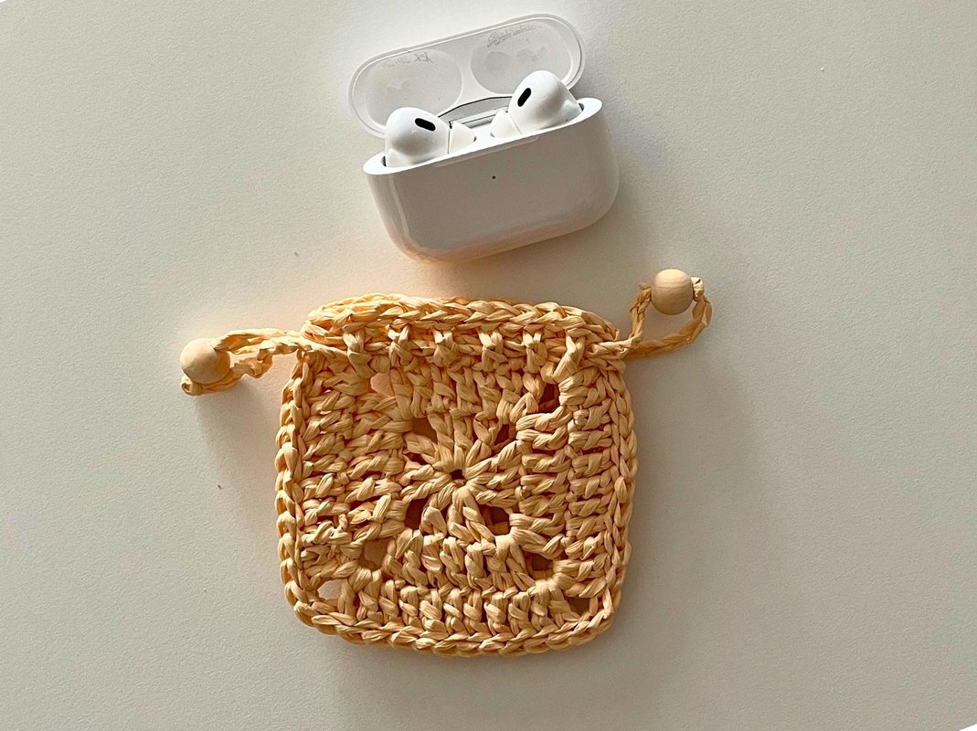 Create a unique earphone case using the classic granny square and raffia! This crochet pattern includes detailed instructions to make a stylish drawstring pouch, perfect for wireless earbuds. It's a great project for using up yarn scraps and making a practical, handmade accessory. Ideal for crochet enthusiasts looking for something fun and useful.