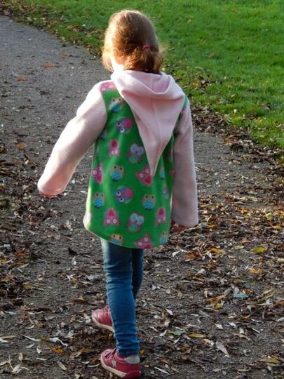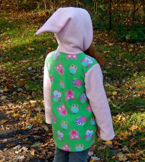 This jacket is an eye-catcher! The pointed hood, the flared pattern and the patched heart pockets lets this style turn into something special! Two variations for the hood are explained within the pattern being a round and pointed hood. Even absolute beginners can sew this jacket.
