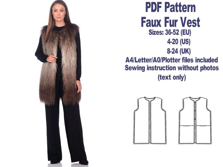 1. Option A: Faux fur gilet, finished back length – 77 cm;
