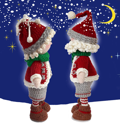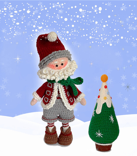 The pattern includes step-by-step instructions to craft Santa in his burgundy suit, with a fluffy white beard, Mrs. Claus in her festive outfit with a cute hat adorned with little bells, and a beautifully decorated Christmas tree to complete the holiday setting. Every detail, from Santa's charm to Mrs. Claus' attire, brings a warm and festive touch to this delightful amigurumi set. Perfect for Christmas decor or as a heartfelt handmade gift, this pattern is easy to follow, with clear instructions and helpful photos.