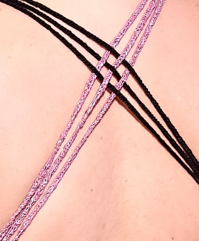 With the help of photo instructions, you will be explained how to change the color in the check pattern. In addition, crocheting the holding cords is explained in detail in photos.