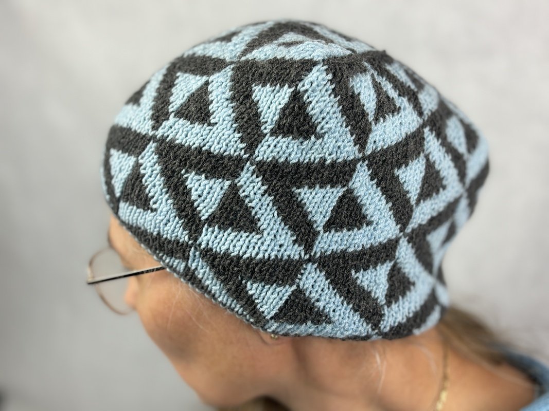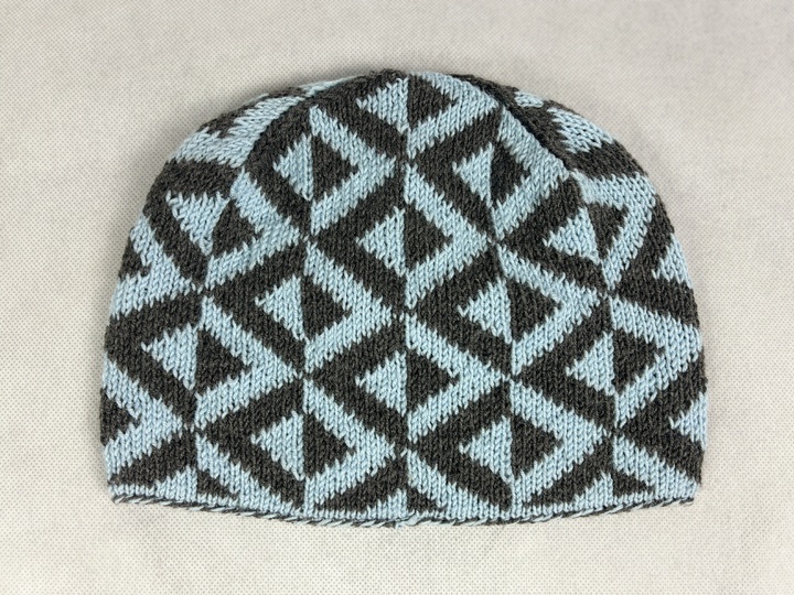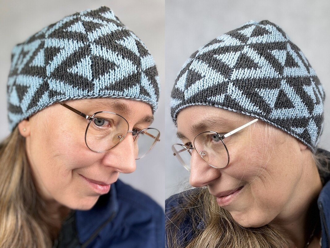 Inspired by the reflections of the sky in a mountain lake surrounded by slate stones, I designed this pattern. First I created a scarf (also available in my store at: https://www.crazypatterns.net/en/items/104577/scarf-reflections-a-double-knitting-pattern) and now this reversible cap has been added. When designing the cap, it was important to me that the pattern would carry through to the top so that the illusion of reflections would be maintained. I really fell in love with this pattern and wanted to give myself the cap as a present for the coming winter. I probably didn't count on my two sons, who regularly “lend” me the cap ;-).