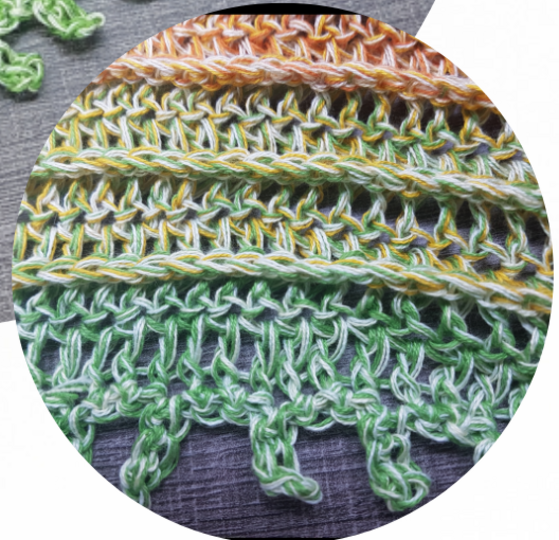 *This asymmetrical shawl with its pretty little border is ideal for beginners wanting to learn front post double crochets.