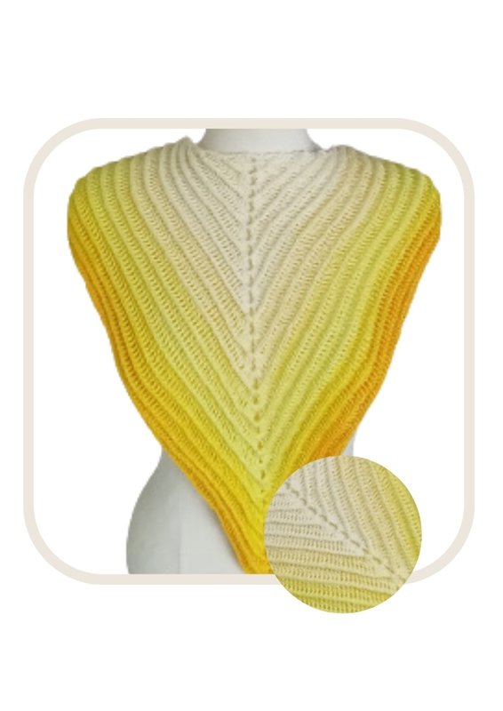 This triangular shawl is symetrical with a deep tip and is perfect for those who want to get familiar with front post double crochet stitches.