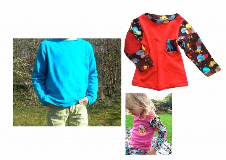 Your child will be the star in kindergarten wearing MICKYs T-shirt. Why don´t you play around with different fabrics and sew a special unique piece? The pattern includes patches for the elbows and a patched pocket on the front. This sweatshirt is sewn in no time and very easily. If you feel like it, why don´t you sew the matching baggy trousers and beanie?