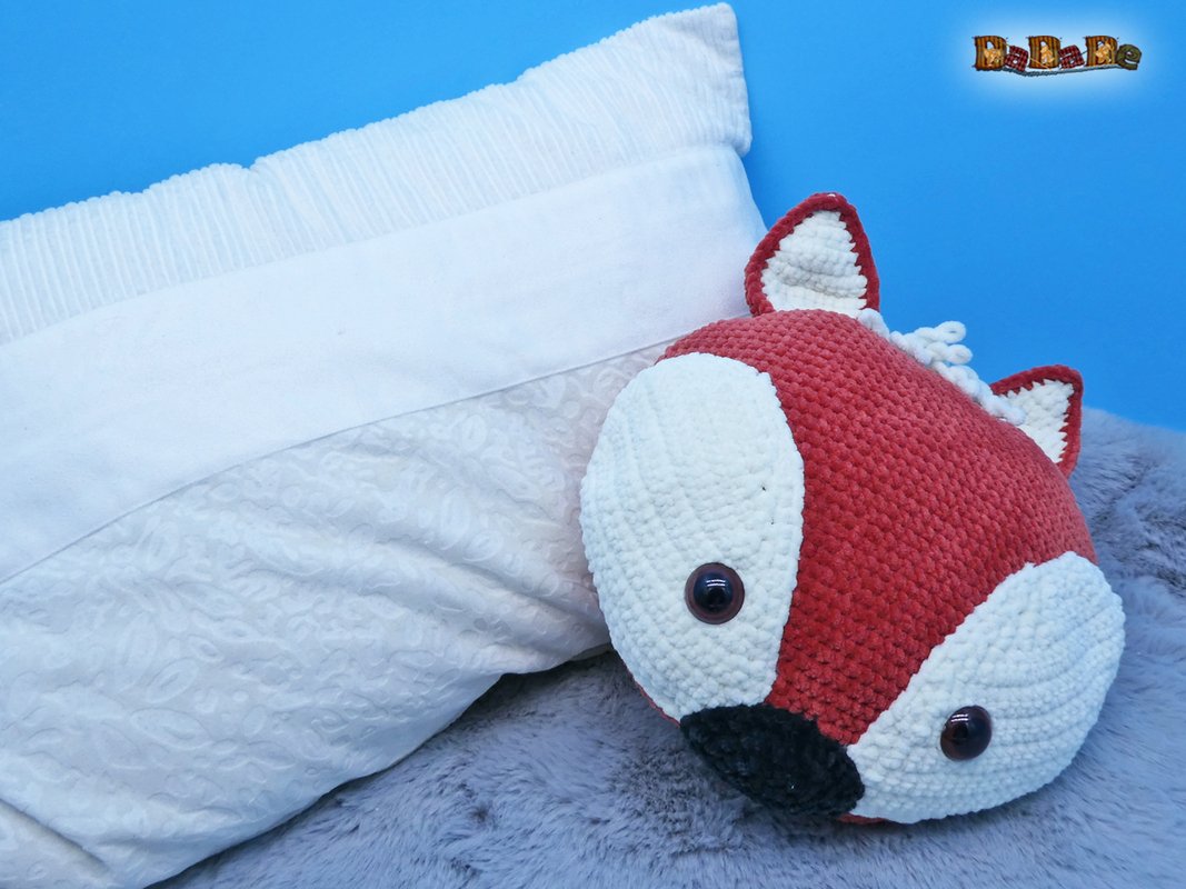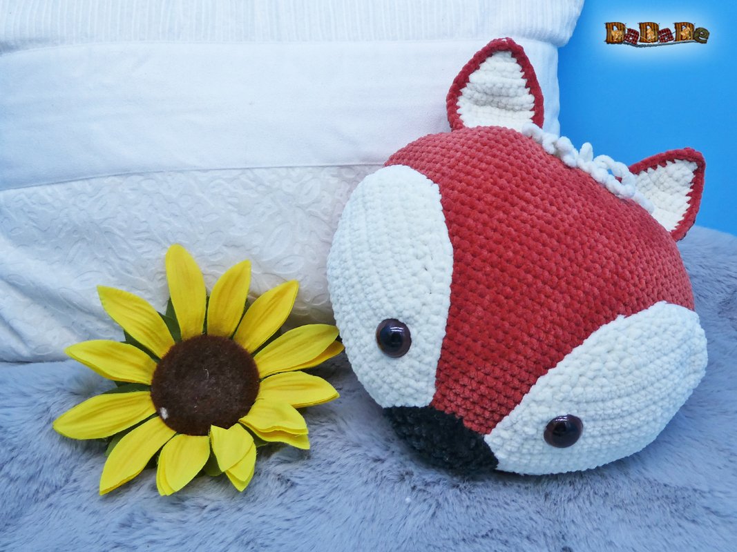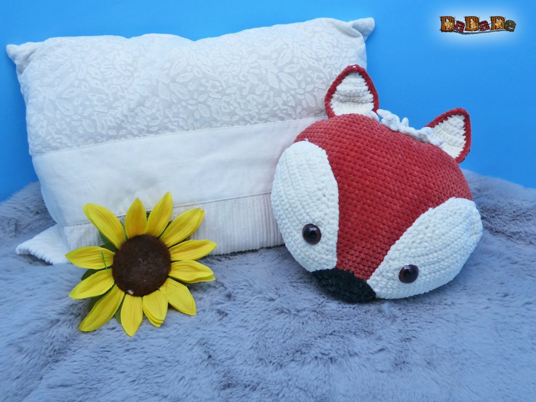 Hier kauft man nur die Häkelanleitung für dieses weiche, kuschelige Fuchs-Kissen Fenny.