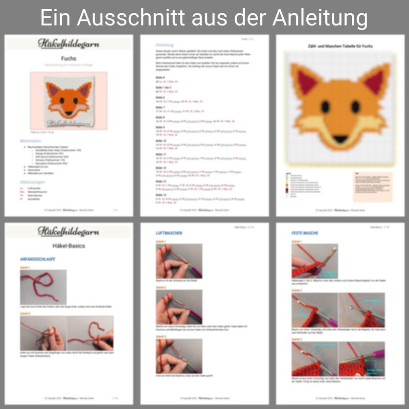 In der Anleitung wird keine Häkelschrift verwendet. Die Maschentabelle ist so gestaltet, dass das Häkeln durch fertig gezählte Maschen erleichtert und beschleunigt wird. Es wird in Reihen und festen Maschen gehäkelt.