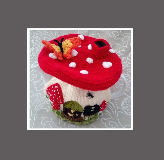 Quick & easy & fun to make this 4-6-cup Tea Pot Cosy, called Fairy Mushroom Tea Cosy Pattern