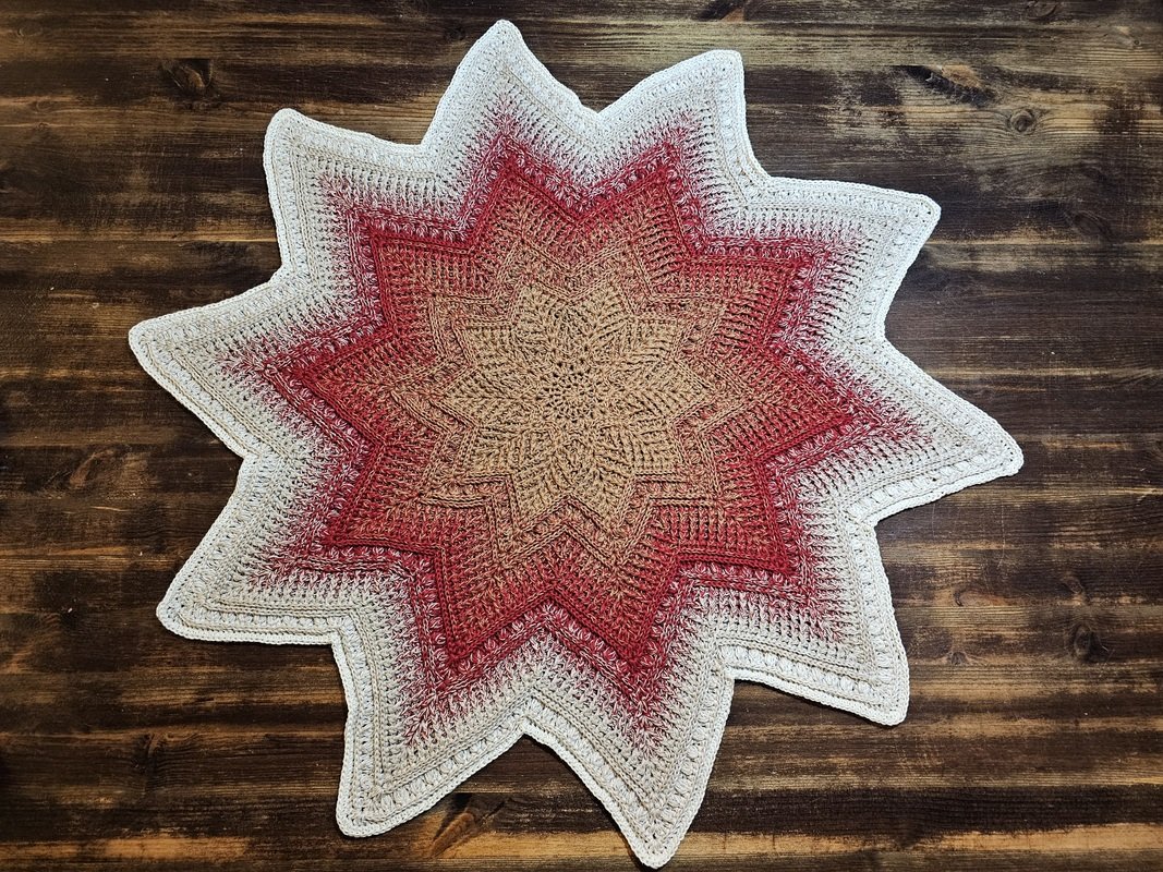Der Stern kann mit Baumwolle oder Farbverlaufsbobbel gehäkelt.