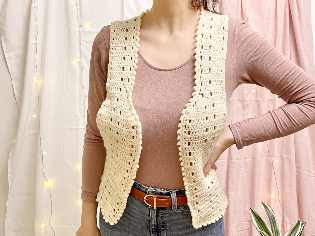 Mit dieser Häkelanleitung kannst du dir deine eigene Weste im Vintagestil häkeln.