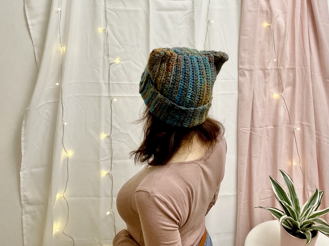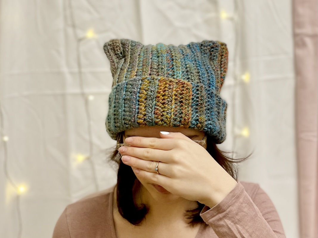 Mit dieser Häkelanleitung kannst du dir deine eigene Mütze mit Katzenohren häkeln.