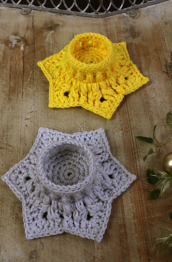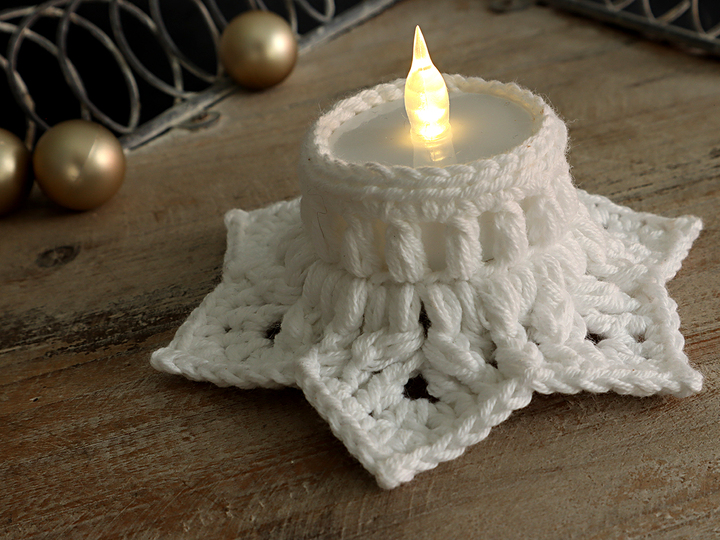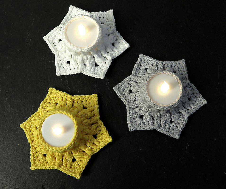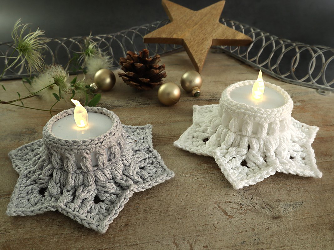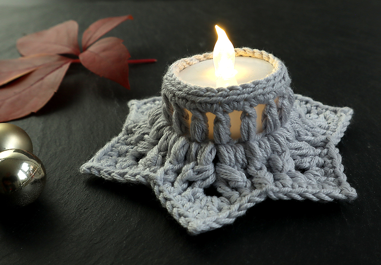 These enchanting star-shaped tealight holders can be crocheted quickly and cleverly with the slightly thicker yarn.