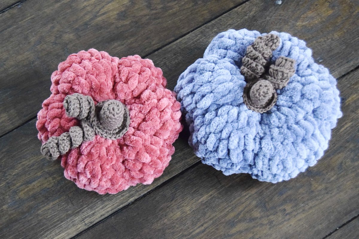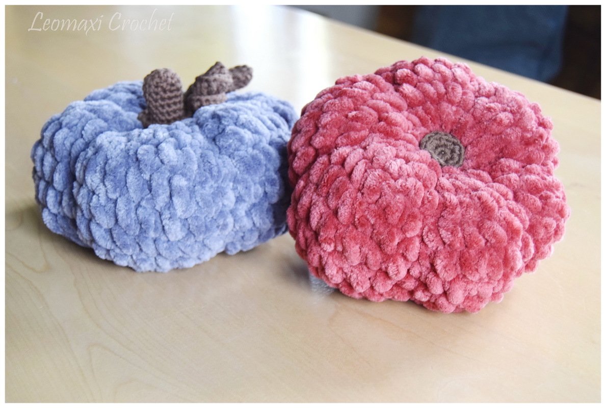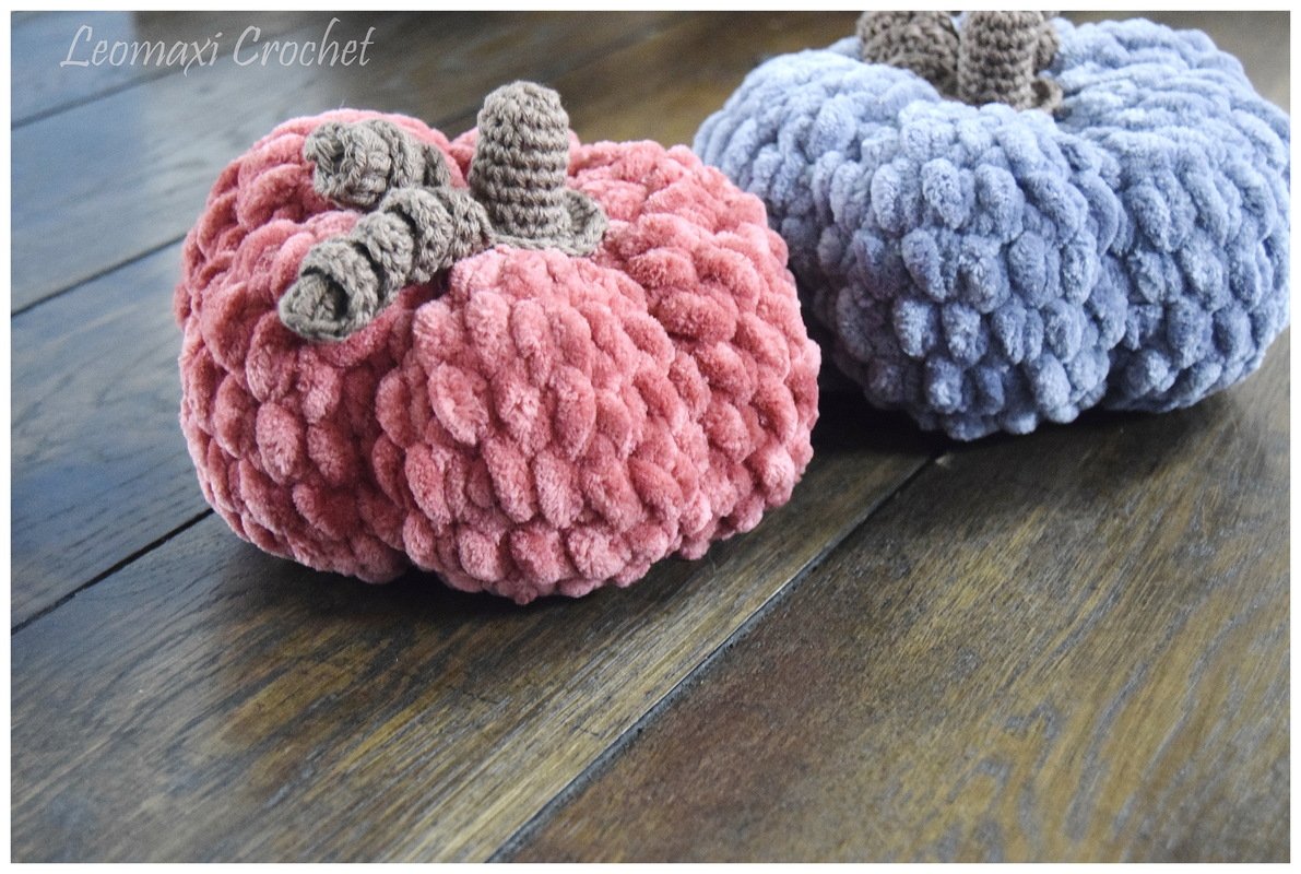 Ein Kürbis ist blitzschnell aus einem Knäuel Samt XL von myboshi gehäkelt. Das Projekt geht sehr schnell von der Hand und perfekt für Häkelanfänger. Nach dem großen Erfolg meiner großen CUDDLY Kissen im letzten Jahr, wollte ich in diesem Jahr ein noch einfacheres und schnelleres Kürbisdesign entwerfen, mit dem auch meine Tochter gut arbeiten kann. Die Kürbisse sind daher viel kleiner und werden in einem Durchgang in Runden, also ohne zusammenhäkeln gearbeitet. So siehst du schnell Erfolg und kannst an einem Abend gleich mehrere arbeiten. Als Highlight sind oben am Stängel noch kleine Korkenzieherlocken als Ranken. Das gibt dem Ganzen noch einen süßen Herbstvipe. Mit der Anleitung hat es sogar meine Tochter geschafft sich ihre Kürbisse selbst zu häkeln. Mit dem dickeren Chenillegarn geht das Häkeln ganz schnell. Möchtest du anderes Material oder normales Chenillegarn verwenden, auch kein Problem, die Größe des Kürbisses ändert sich je nach Materialstärke. Du kannst aber auch einfach die Größe nach Wunsch anpassen, wie das alles geht erkläre ich dir nun in der folgenden Anleitung. Also komm, lass uns den Herbst nach Hause holen