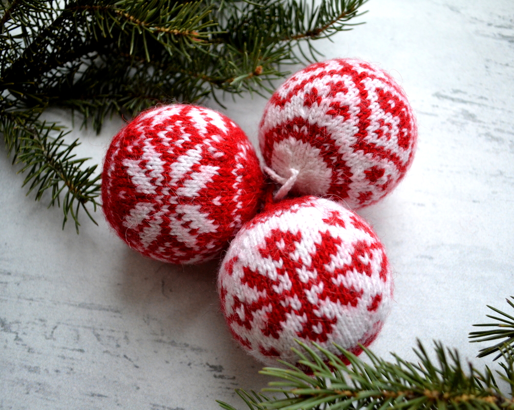 No doubt, at the Christmas Eve everyone wants to do something nice and cozy him or herself! I would like to propose you knitted Christmas balls with Norwegian pattern. Such balls made with 5 knitting needle will decorate any Xmas tree and make your home special! These Xmass balls can become wonderful Xmas presents to your relatives and friends. These balls can be stuffed with styrofoam or polyester batting. If little kids play with theses balls, the balls will be dirty very soon, that’s why I recommend to stuff the decor elements with polyester batting, so it will be easier to wash them.