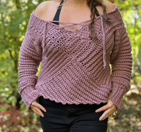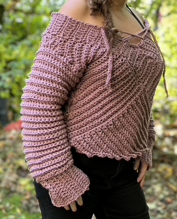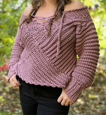 This cuddly soft sweater impresses with its extraordinary pattern. At first glance the pattern seems complicated, but as usual it is crocheted in back and forth rounds. Thanks to the thick wool, the sweater can be crocheted very quickly.