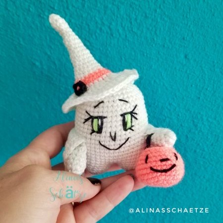 This is the original pattern of Candy – the Little Cute Ghost designed by Yevheniia Romanchuk (LovenikaDesign). This pattern is written in US terminology.