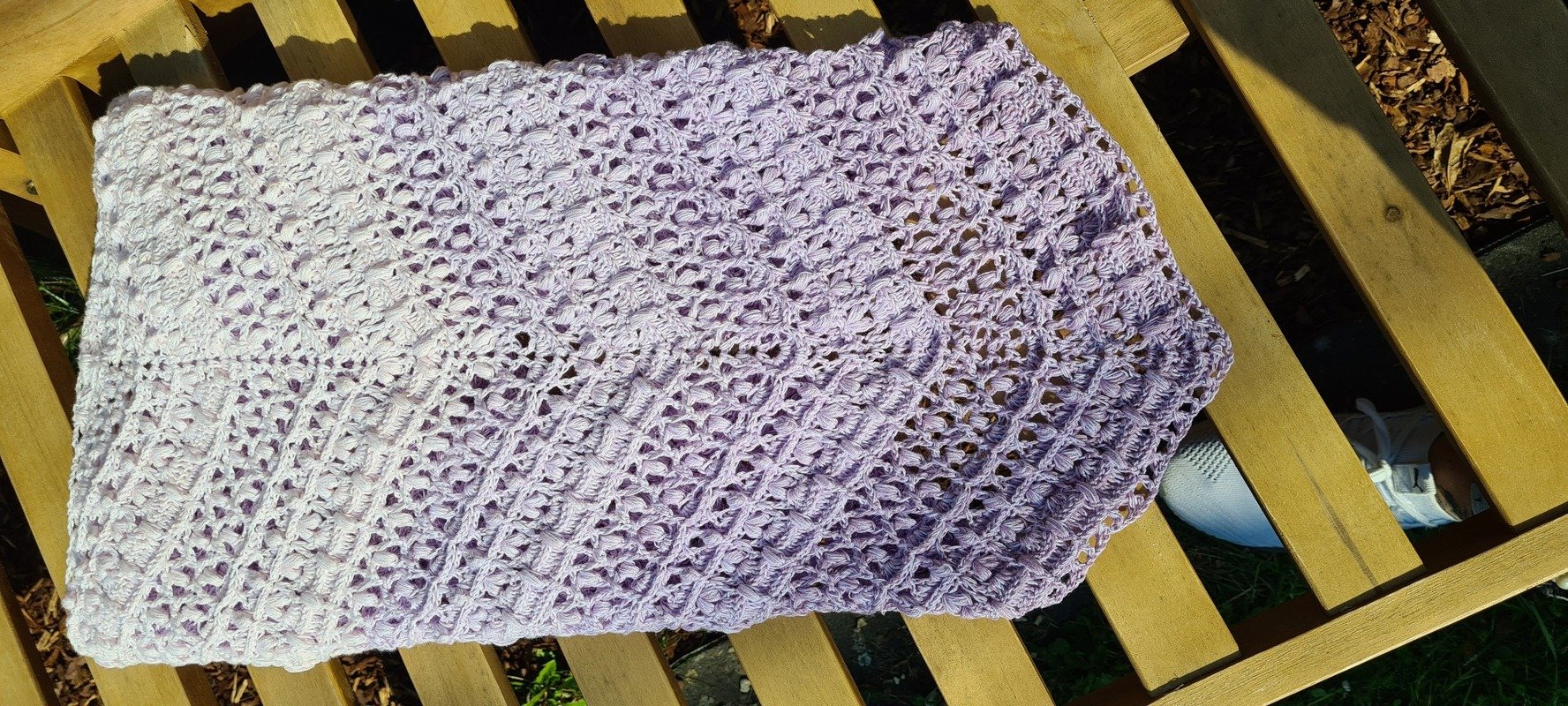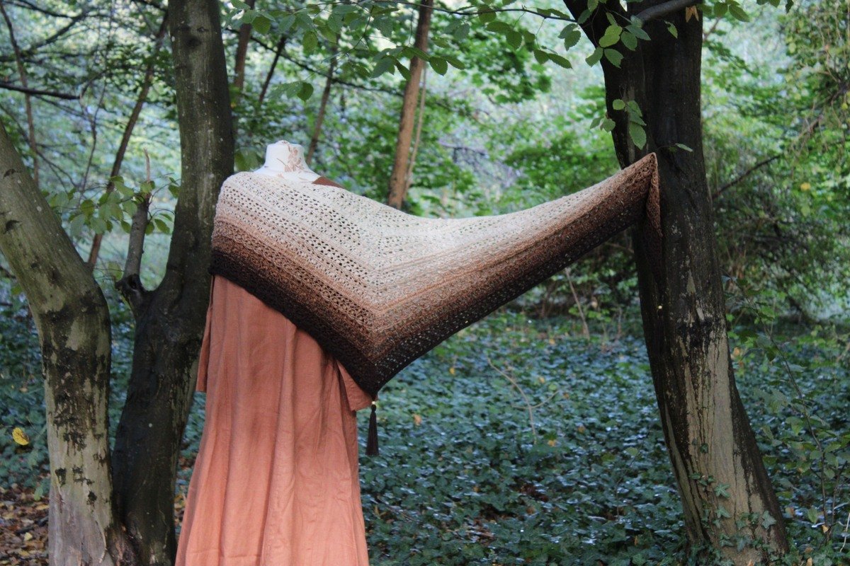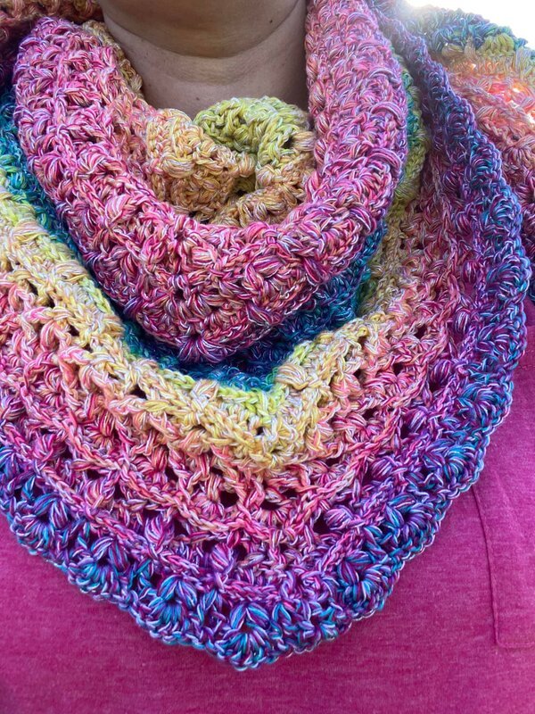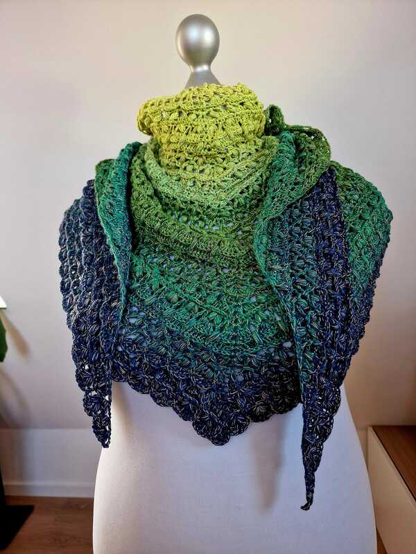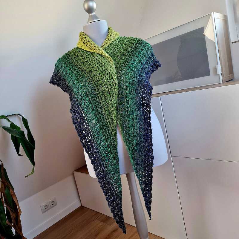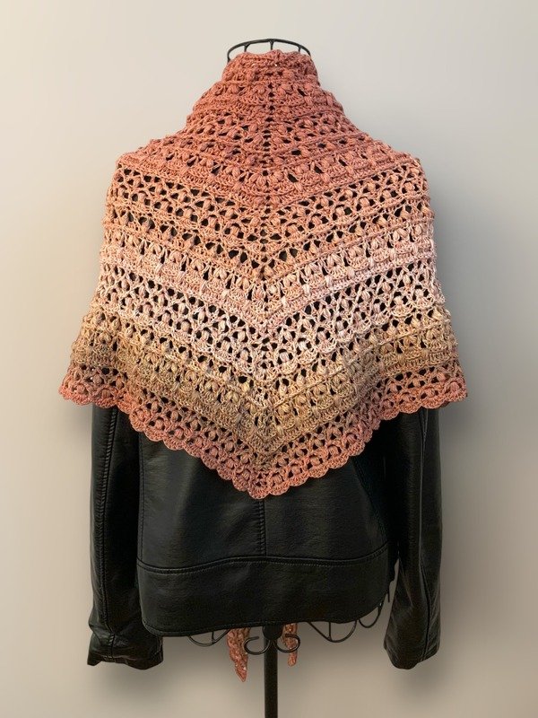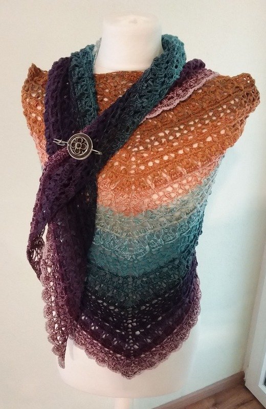 Despina is a beautiful, playful, flat triangular shawl, the front post, back post and puff stitches create an amazing 3D effect, the shawl is a great eye-catcher for the fall!