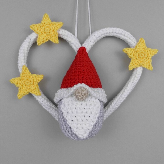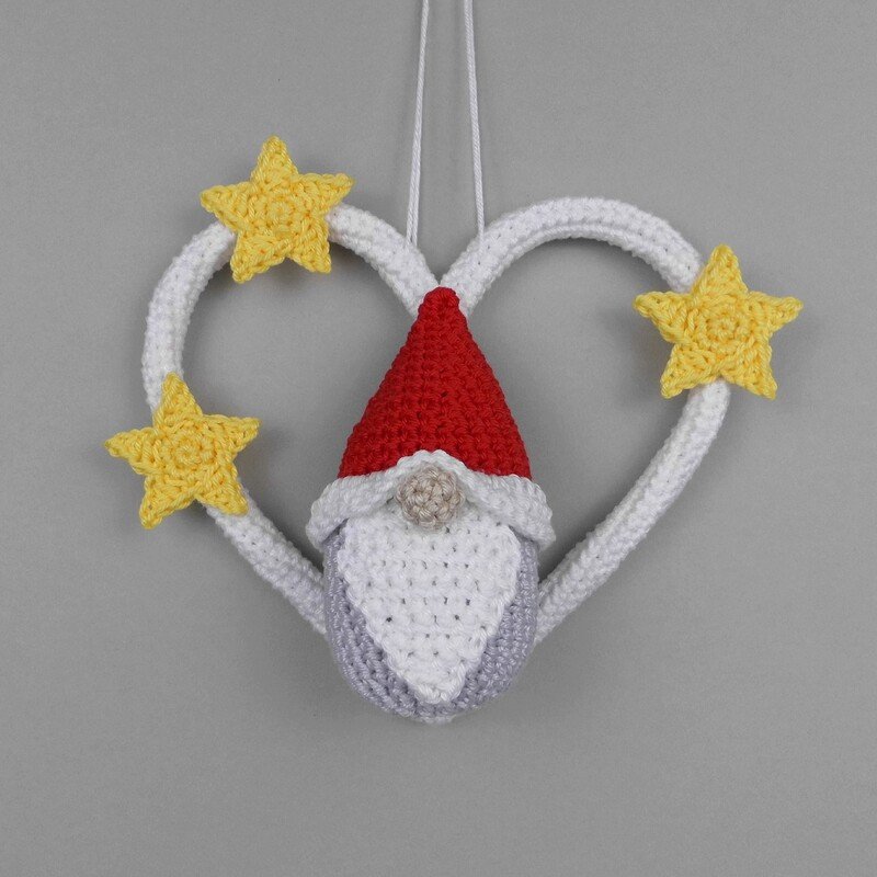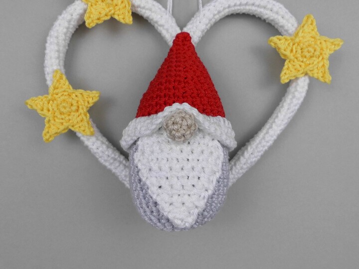 The PDF crochet pattern includes, in addition to the written crochet instructions, the crochet chart for the little stars and many detailed and explained step-by-step photos, so that you can easily crochet this cute gnome as a hanging decoration.