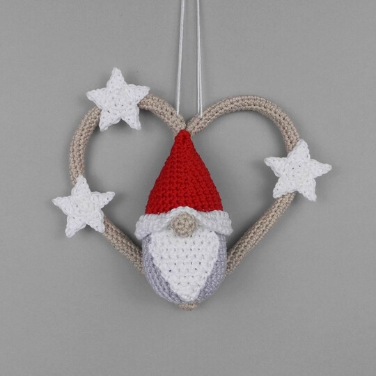 The cute Christmas gnome hanging decoration is a beautiful eye-catcher on doors, walls, and windows and is easy to crochet, even for beginners with a little practice.