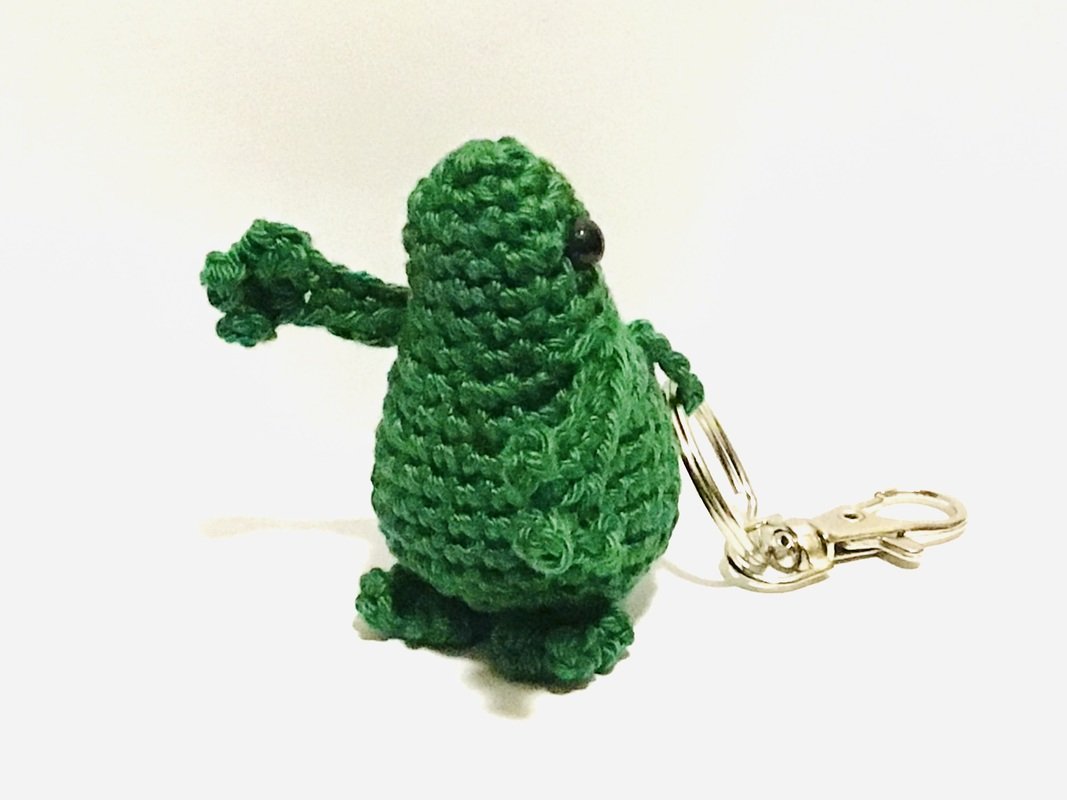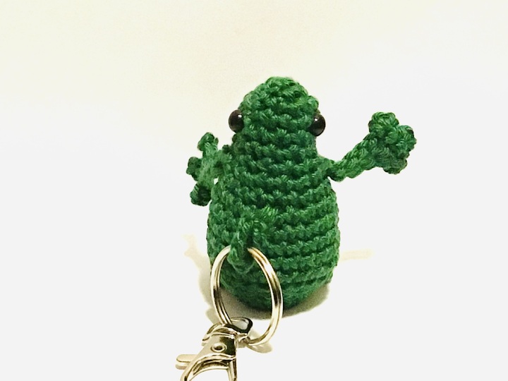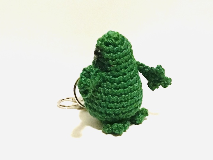 Dieser Frosch ist fadenlos glücklich. Er wird in einem Rutsch gehäkelt, sie beginnen mit einem Faden, enden mit einem Faden und der Frosch ist fertig.