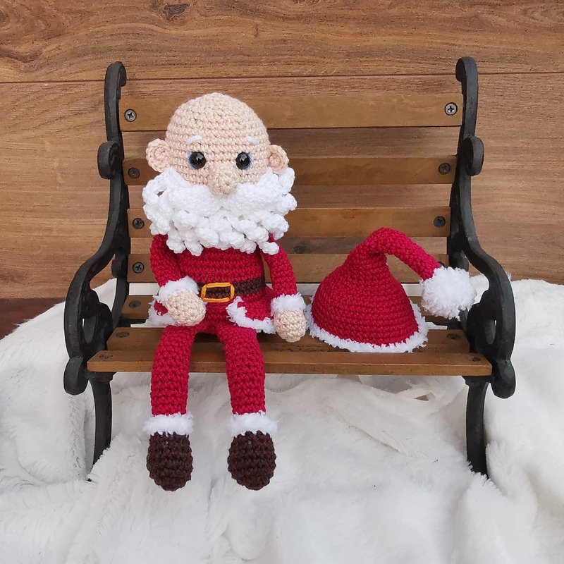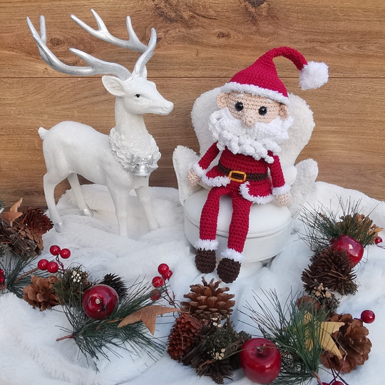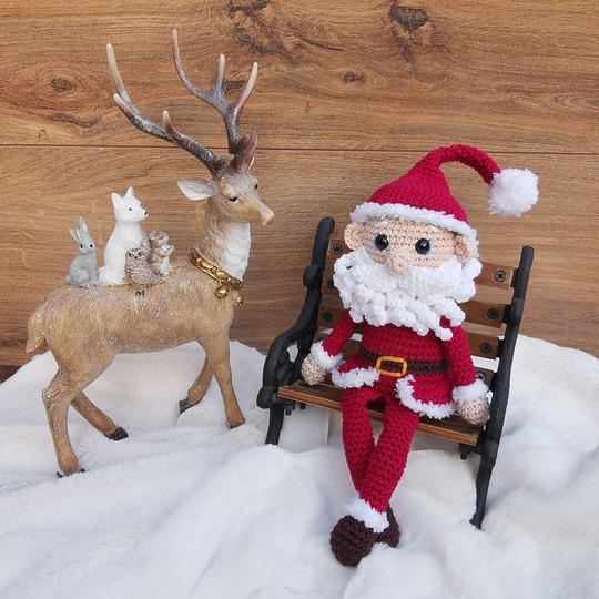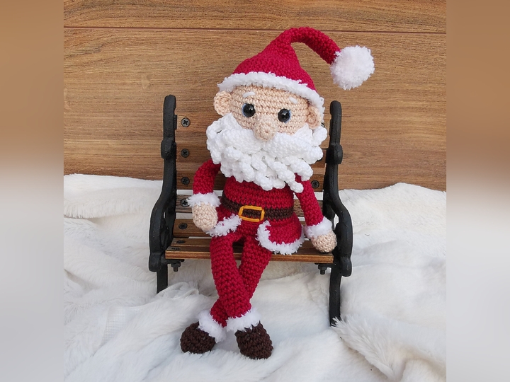 This cute little guy here should of course not be missing from any Christmas decoration. The body and head are one piece. The arms and legs are crocheted in as well. All you have to do at the end is sew on the nose, ears and beard. Santa has dangling legs and can therefore only sit and not stand.