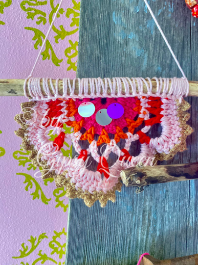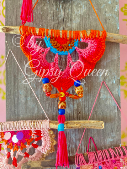 Ein wunderschöner Wandbehang mit Perlen oder Pailletten.