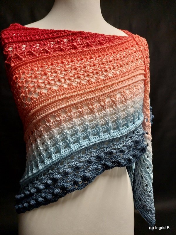 Libera is a pattern mix in a flat form. The pattern is versatile and combines different crochet patterns, resulting in an interesting texture. It is perfect for all seasons.