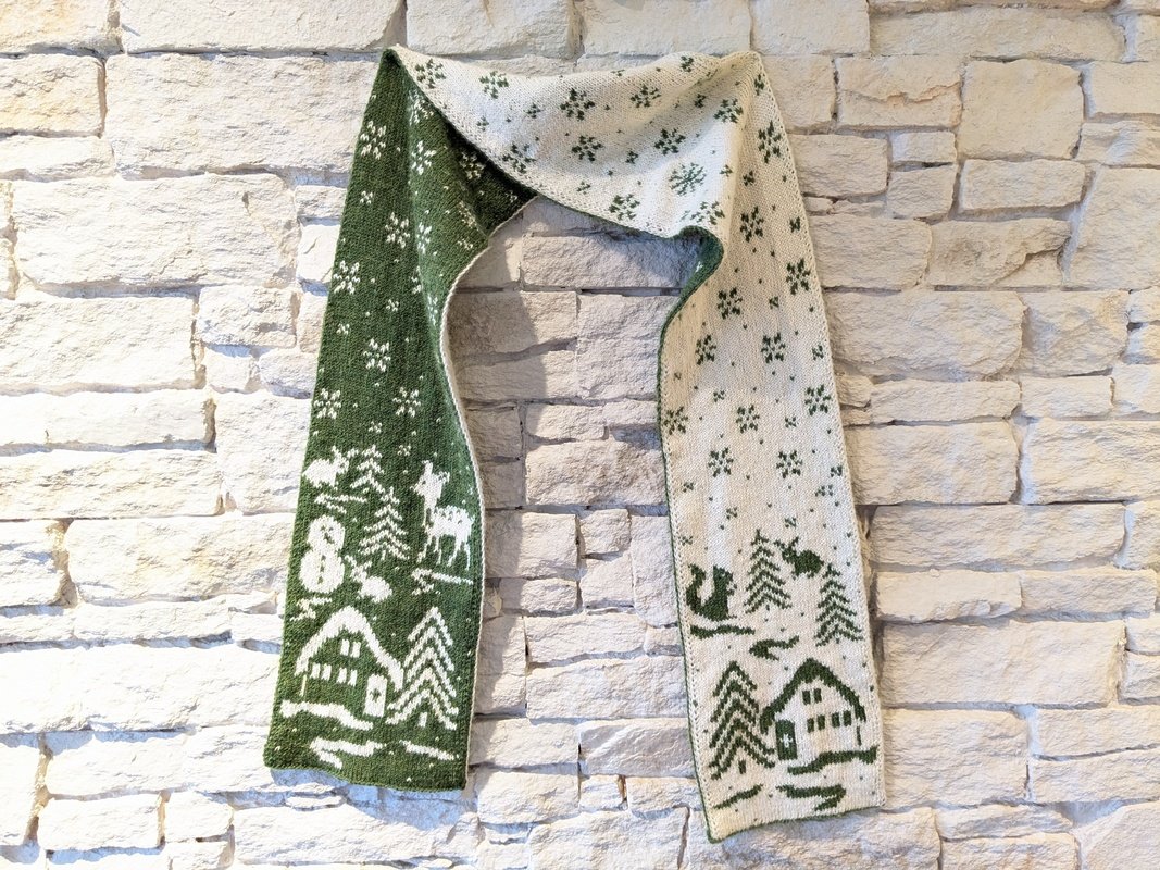 This snowy winter wonderland looks like the beginning of a beautiful fairy tale. On cold, dreary winter days, it's wonderful to wrap yourself up in this cozy scarf and dream of this peaceful idyll. And while knitting, it is really fun to watch how this beautiful scenery develops!