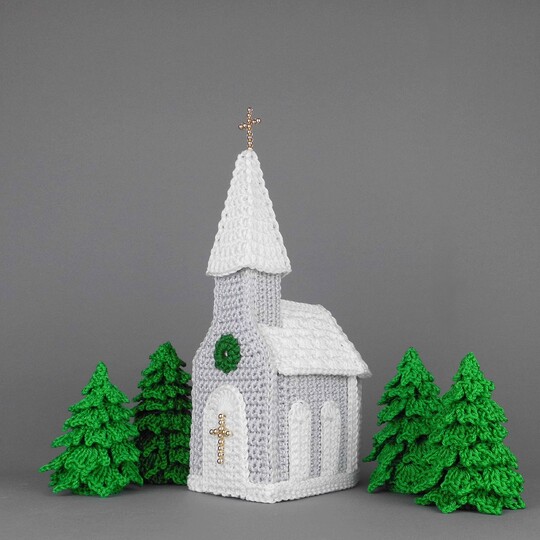 The winter village with church and Christmas trees is an extraordinary Christmas decoration that can be decorated according to your personal style and in many different ways. You can decorate all levels as a tower with a church and fir trees, or individual levels with a church, a small decorated Christmas wreath or a small Christmas arrangement. And of course you can also decorate the beautiful church and the three-dimensional Christmas trees individually.