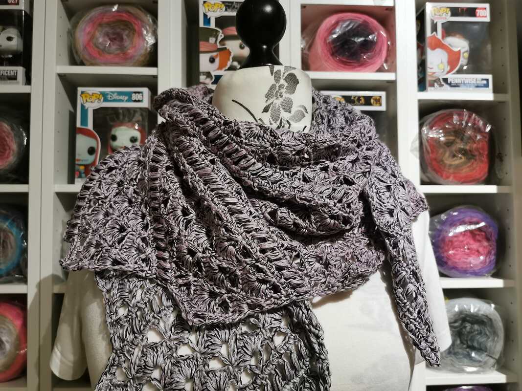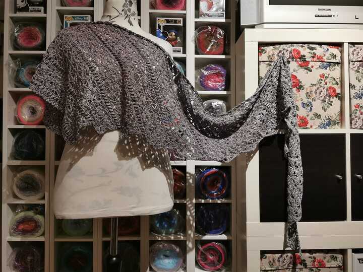 The lovely Satu from Satuko Design asked me if I could crochet a shawl for her from her wool that she could take to the handicraft fair in Tampere. This kite tail shawl was made from 800 meters of the super soft merino wool. The pattern is written and include a crochet chart. The pattern is easy to remember and looks great in all colors.