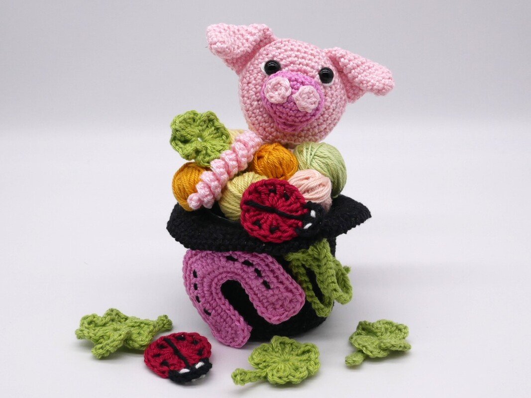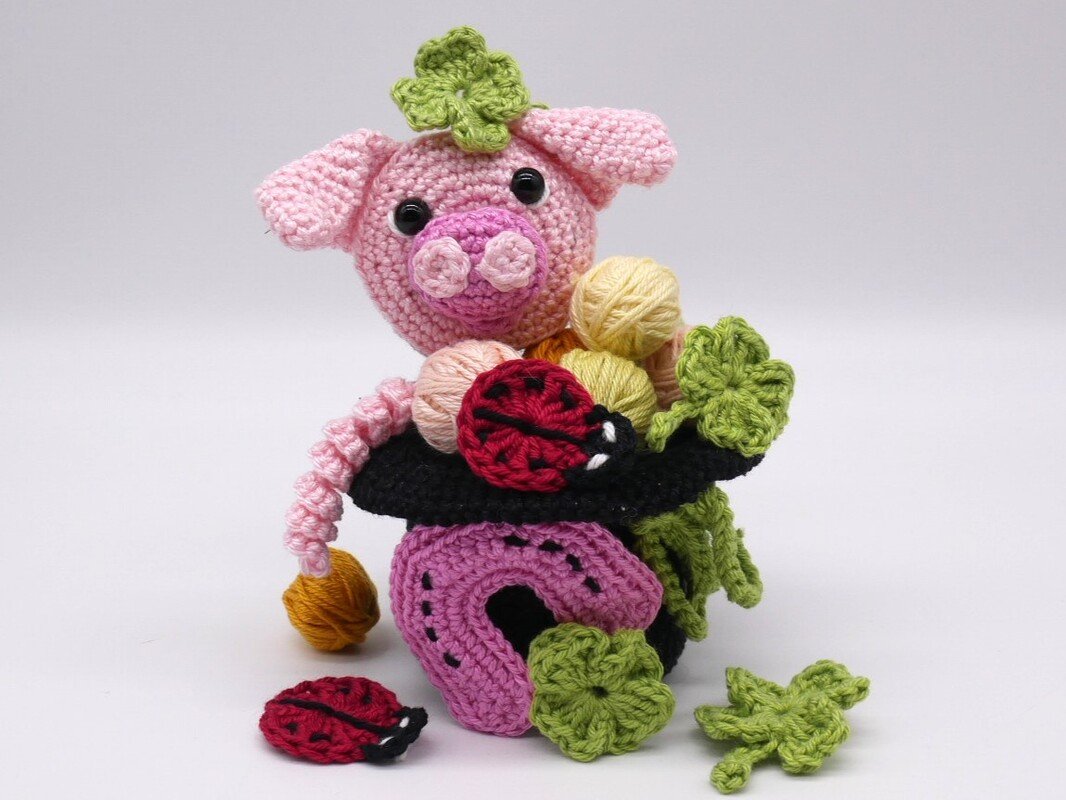 Diese umfangreiche Häkelanleitung enthält mehrere Glücksbringer, um sie nach Gefallen zu kombinieren.