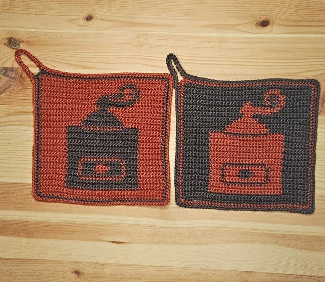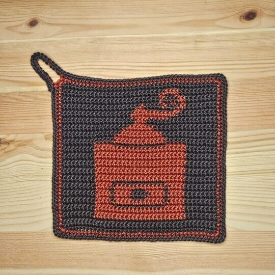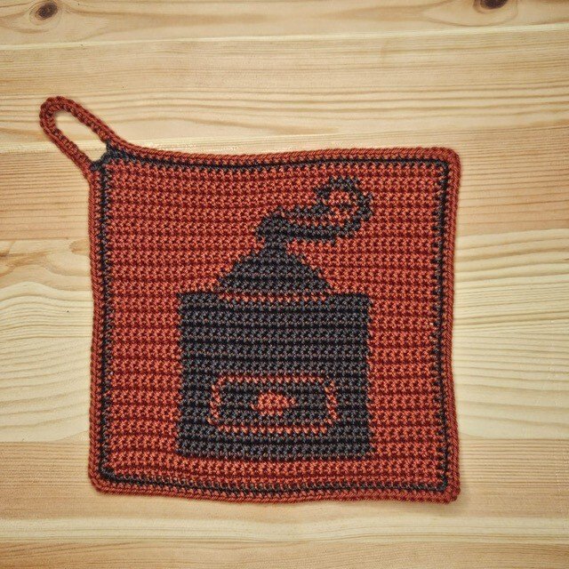 Häkelanleitung Topflappen "Kaffeemühle"