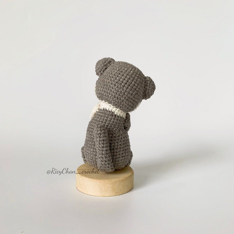 • Sport weight yarn in: Gray (1 roll), Milk white (1/2 roll), Black cotton thread – a little
