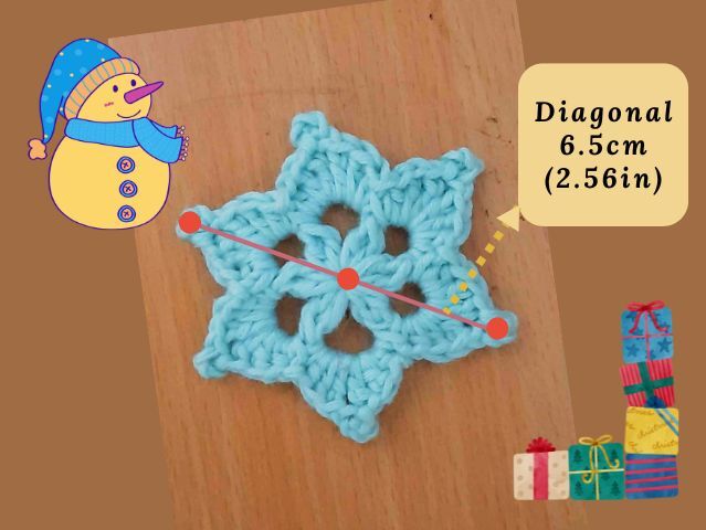 For cotton yarn and C-2 or D-3 (3mm hook), the diameter is 2.36in (6 cm)