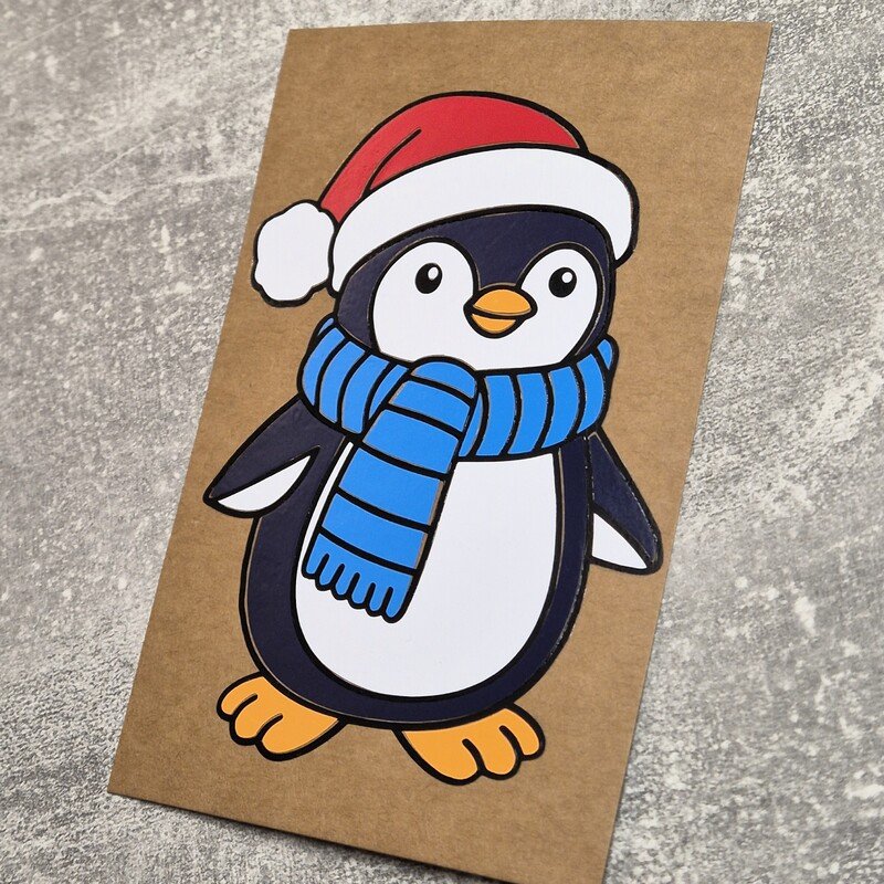 This cute penguin with its cozy hat and scarf brings Christmas cheer to your children's clothing! Perfect for winter and festive projects – whether on hoodies, T-shirts, or sweaters, this penguin is sure to catch everyone's eye. The outline version of the penguin also makes a great window decoration.