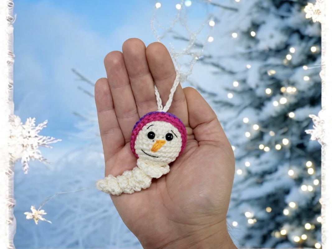 Adorable snowman heads as gifts, Christmas tree ornaments, keychains, or decorations! Quick to crochet and easily customizable – perfect for beginners and anyone looking for something personal and simple for the Christmas season.