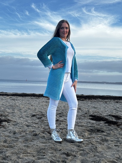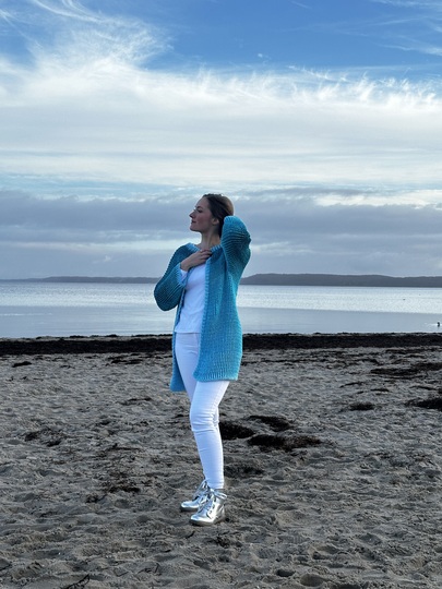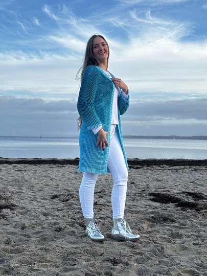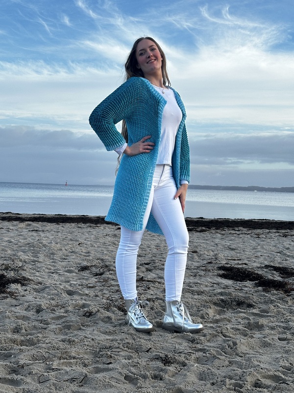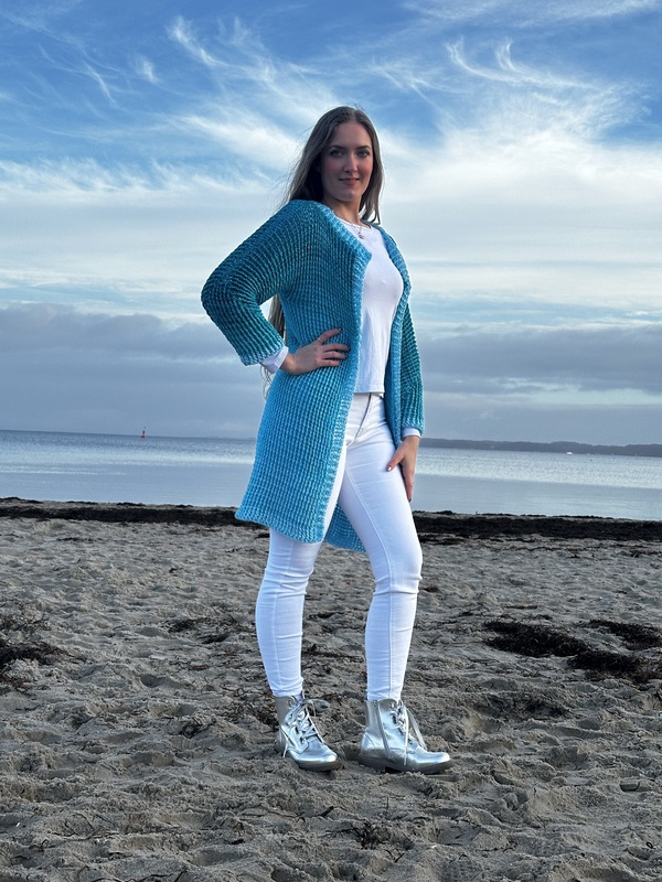 Je nach Garnauswahl, kann man die Jacke in jeder Jahreszeit tragen. Besonders gut eignen sich hier Farbverlaufsgarne, weil sie mit einem Rutsch von der Häkelnadel hüpft.