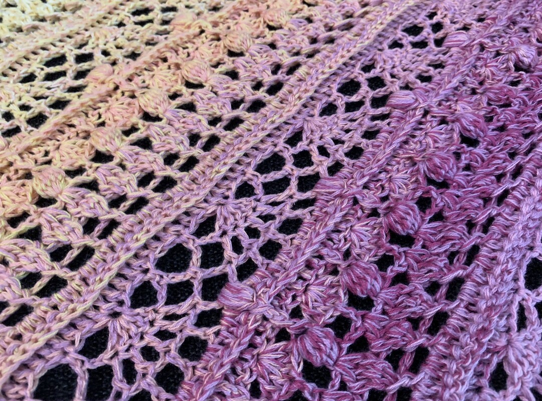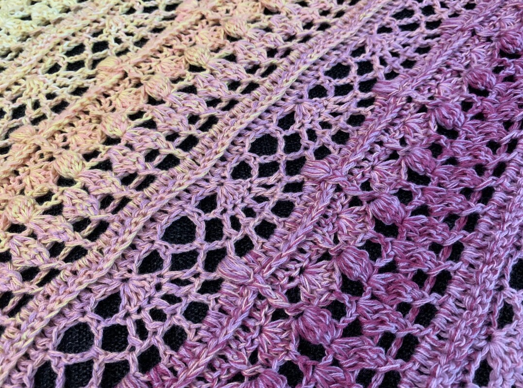 Nemea is a beautiful triangular shawl that can be crocheted in any size as the rows repeat.