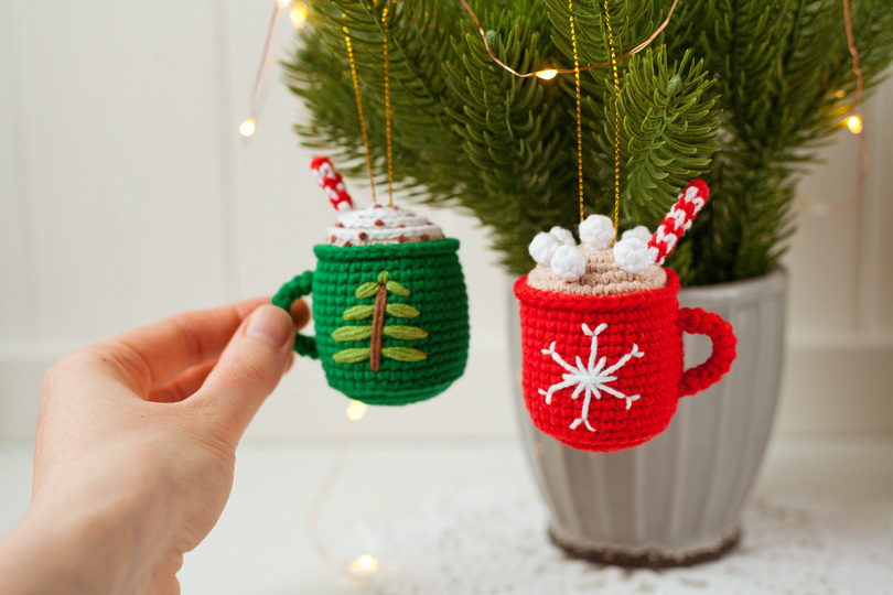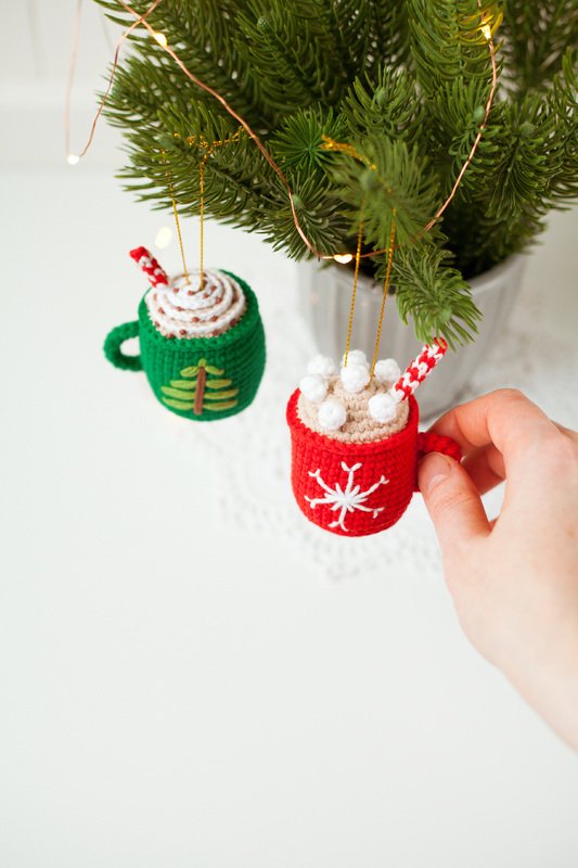 The cutest Christmas cups with cocoa and marshmallows and hot chocolate will create a holiday mood.