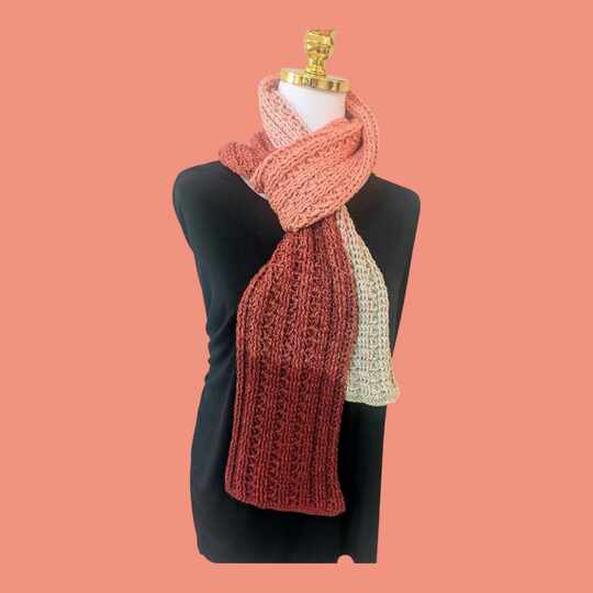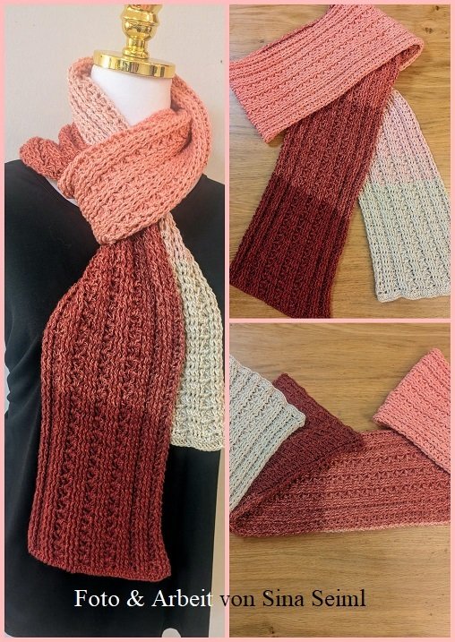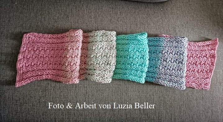 Ein weiterer Schal ist von der Nadel gehüpft, natürlich mit einem Muster aus den beliebten Reliefstäbchen.