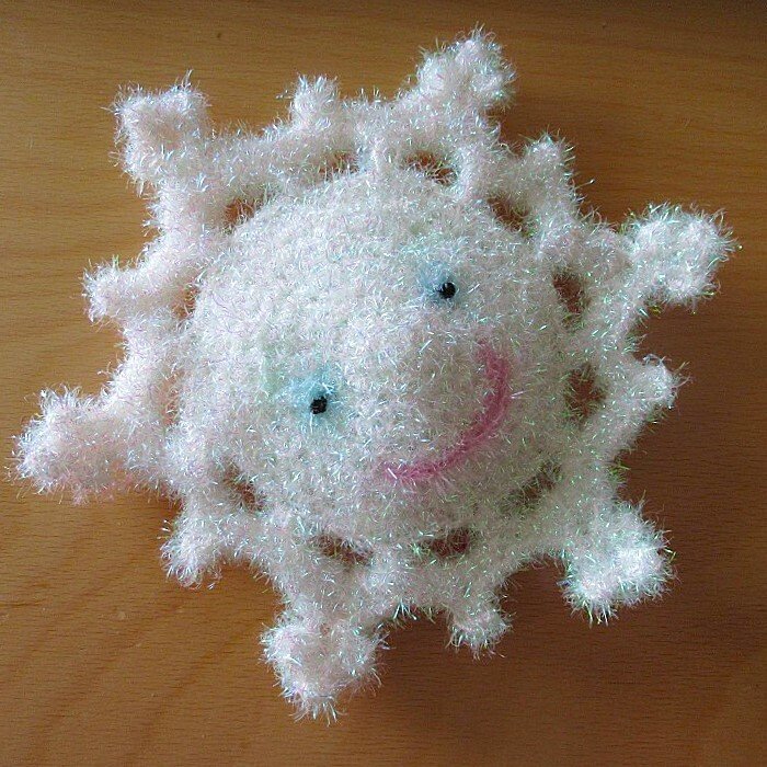 Es schneit... auch in deiner Küche! Diese Schneeflocke ist aus Schwammgarn gehäkelt, das speziell für Spül- und Badeschwämme entwickelt wurde. Das Garn ist etwas kratzig und deshalb sehr gut geeignet, um festsitzende Rückstände auf dem Geschirr zu lösen. Auch als Peelingschwamm lässt es sich prima verwenden. Es trocknet schnell und lässt sich bei 60°C in der Waschmaschine waschen. So kann der Schwamm immer wieder verwendet werden und bleibt hygienisch sauber.