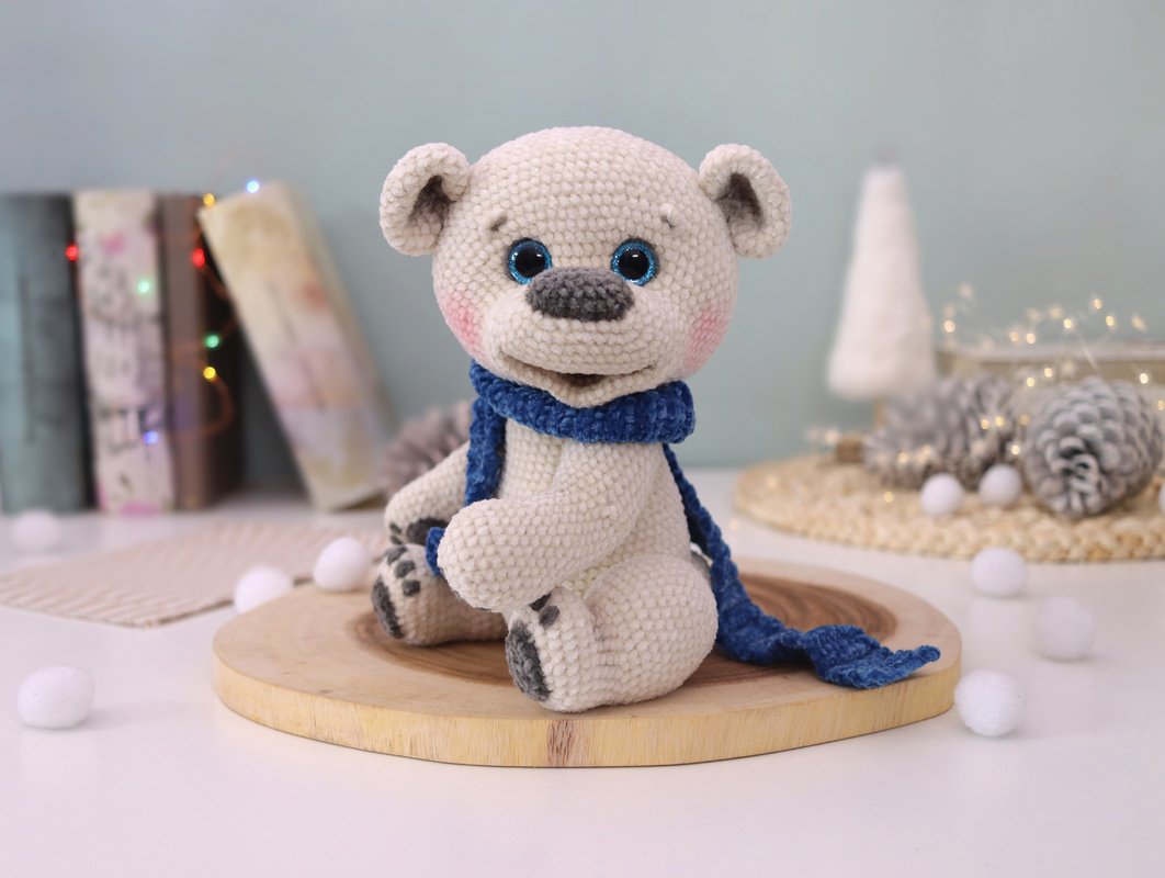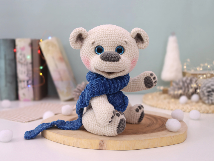 The little ice bear is crocheted from soft chenille wool. The head can be turned in