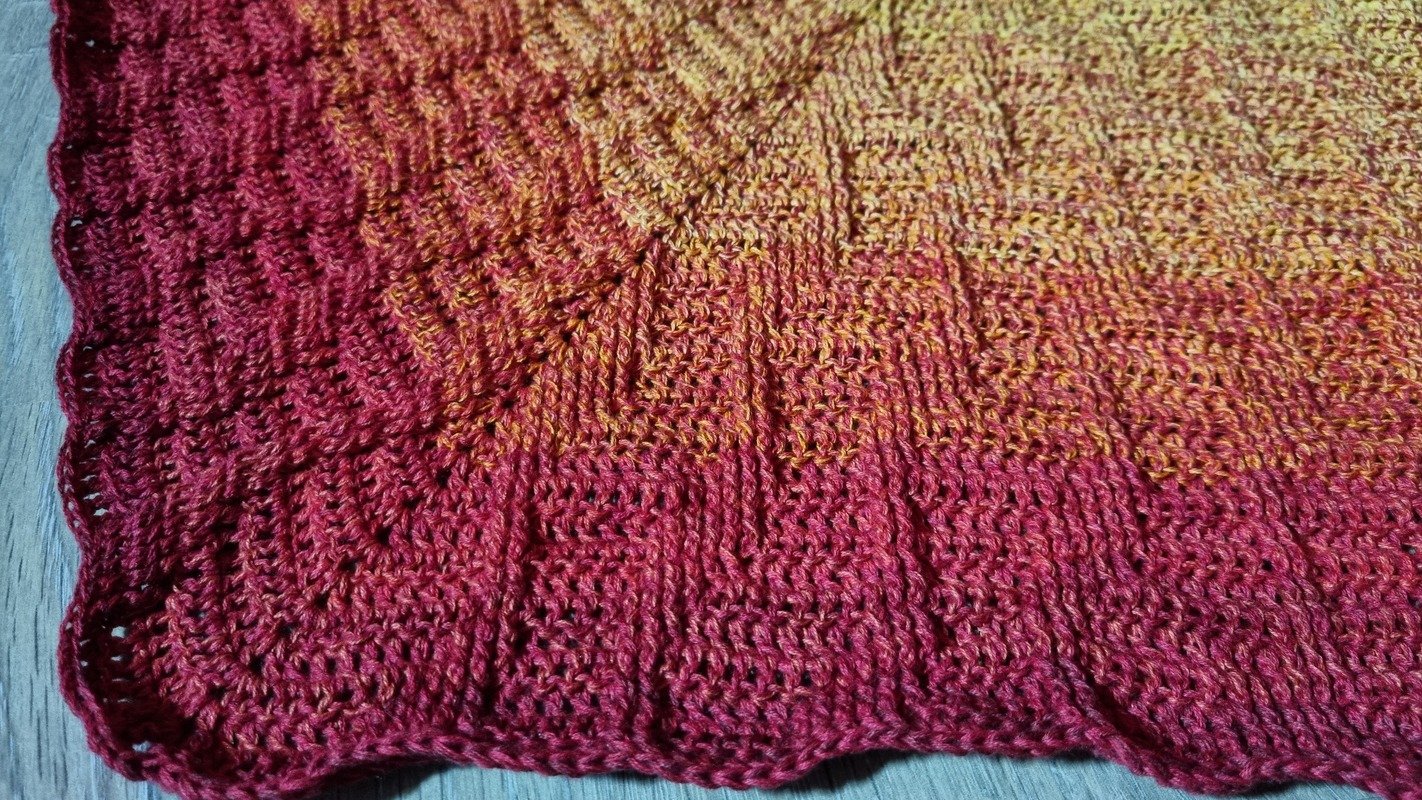 It is a flat shawl with a very interesting structure thanks to the mix of dc, FPdc and BPdc. It is fine for beginners in crocheting.