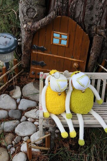 cotton yarn (e.g. Schachenmayr Cotton Time 88m/50 g) and Schachenmayr Tabby 100m/50 gr, crochet hook 3,5 mm, polyester fiberfill stuffing, scissors, yarn needle