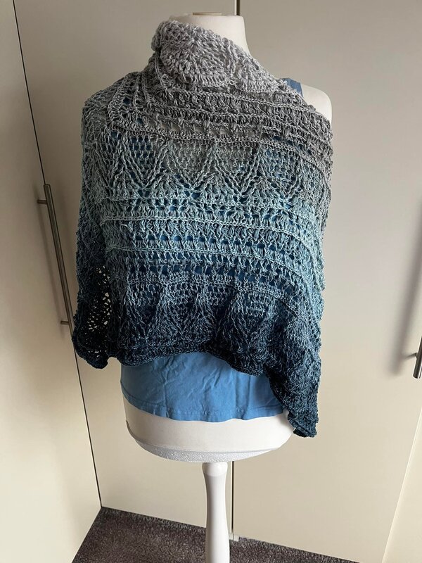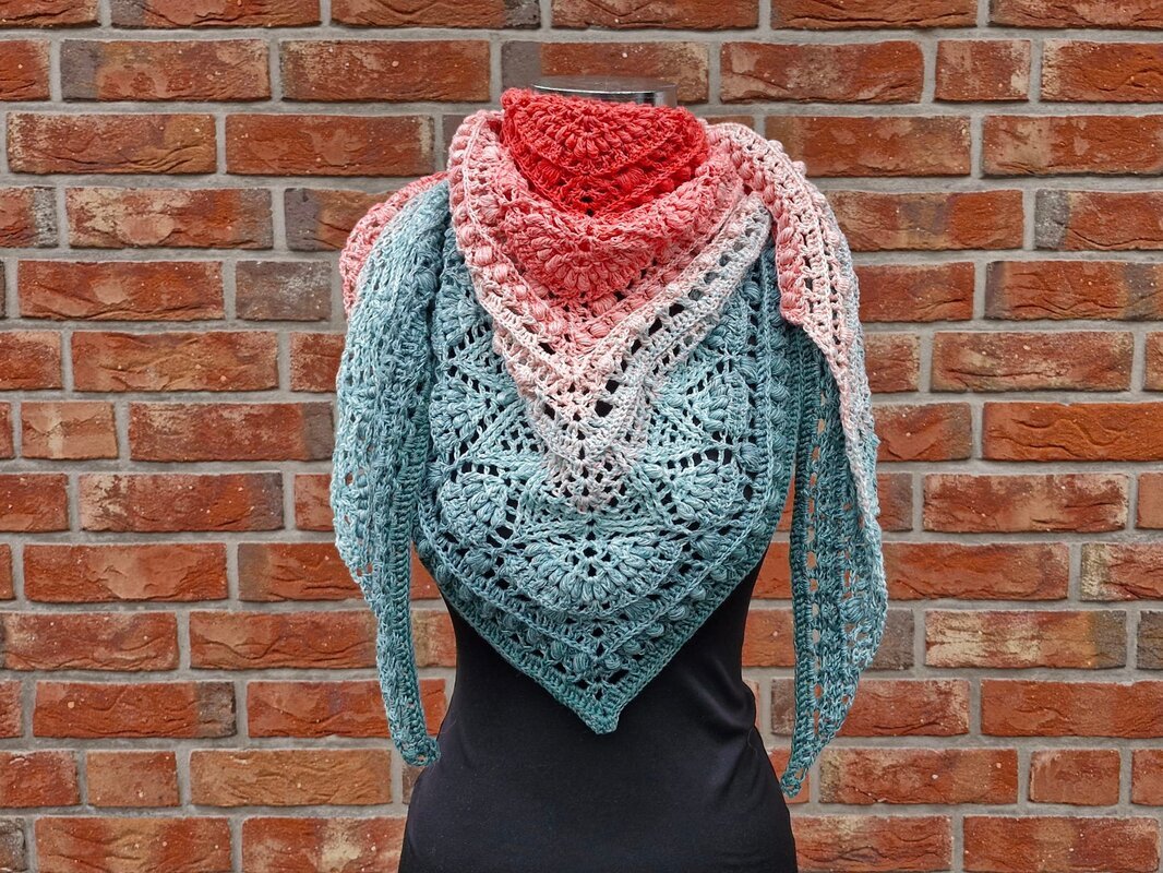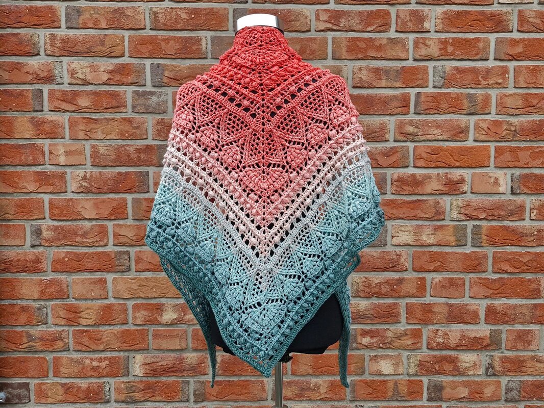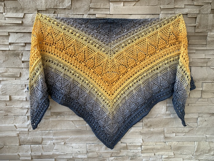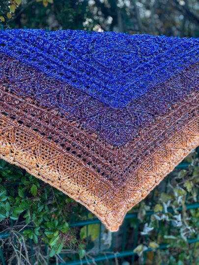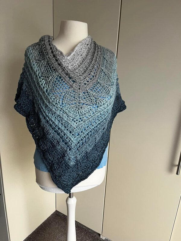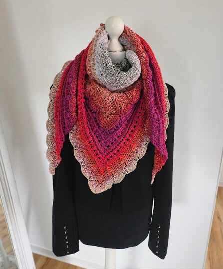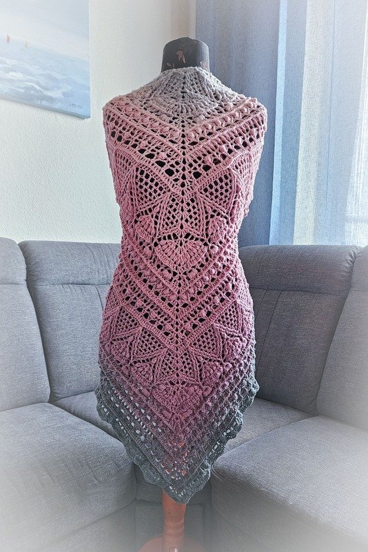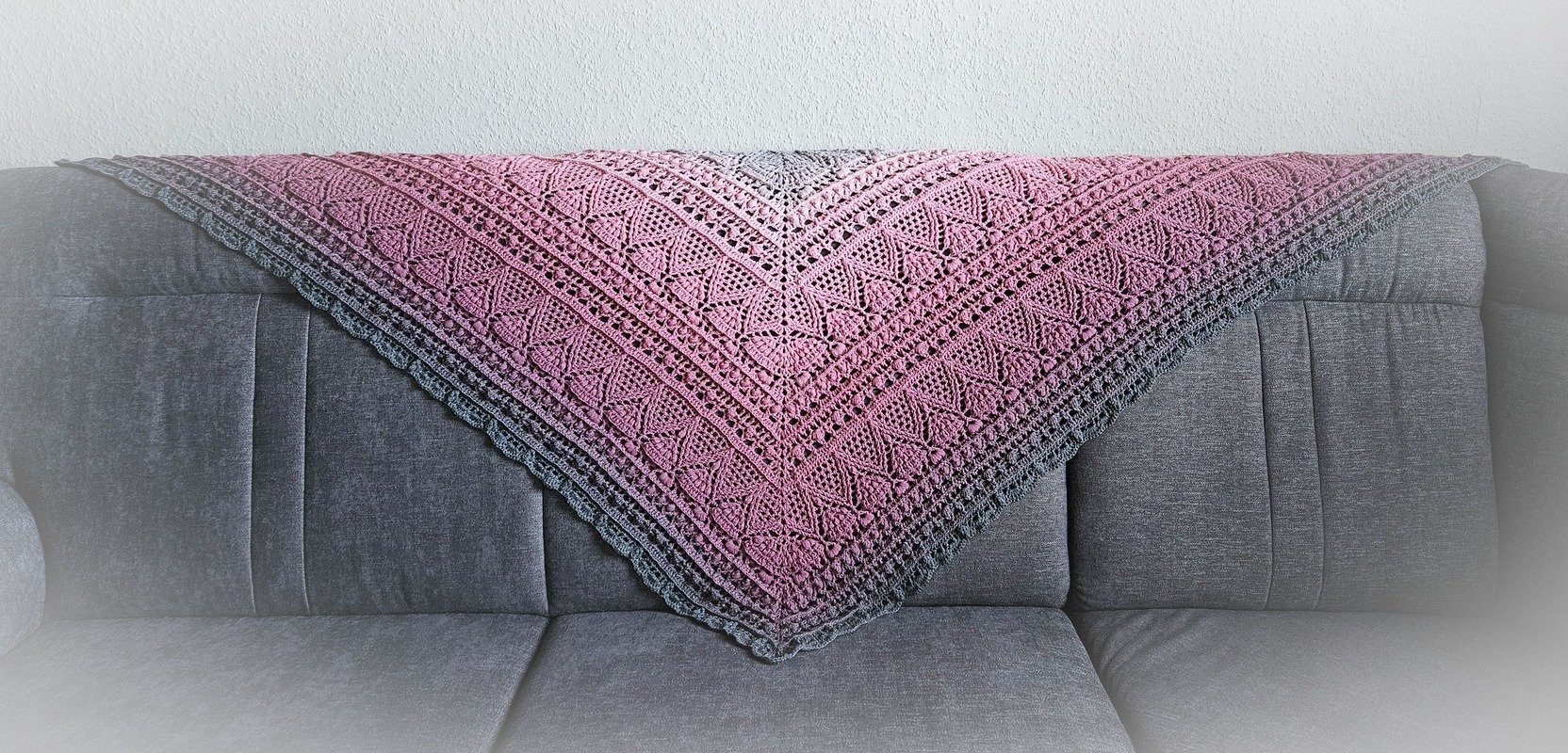 Elysia is a fantastically beautiful, playful, deep triangular shawl that impresses with its beautiful fan pattern. The different patterns ensure that crocheting never gets boring, making it an eye-catcher and wonderful accessory for every season.