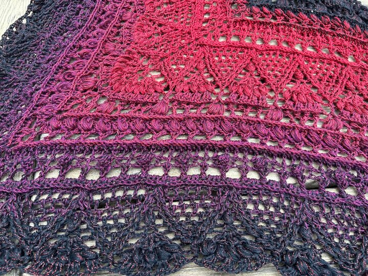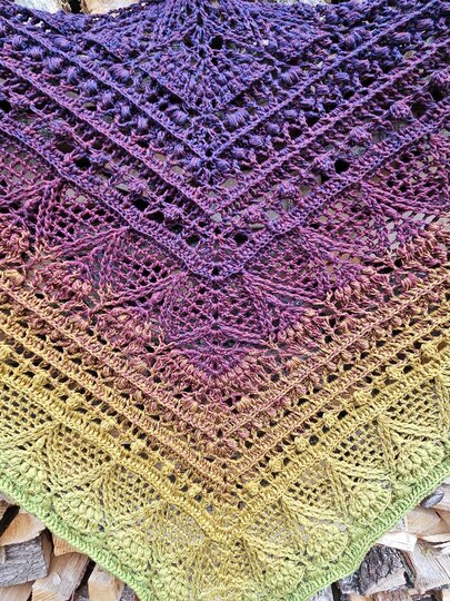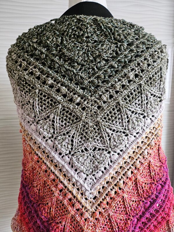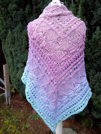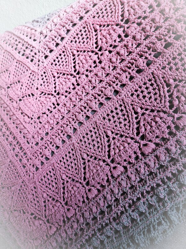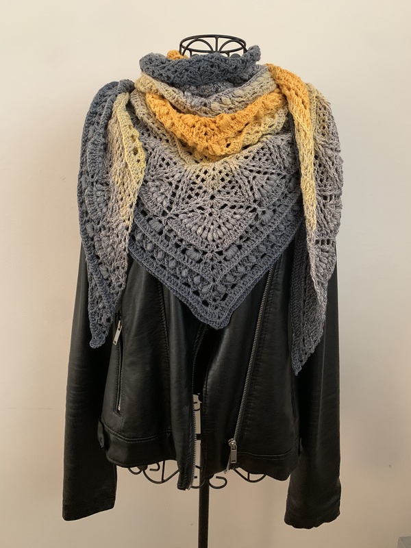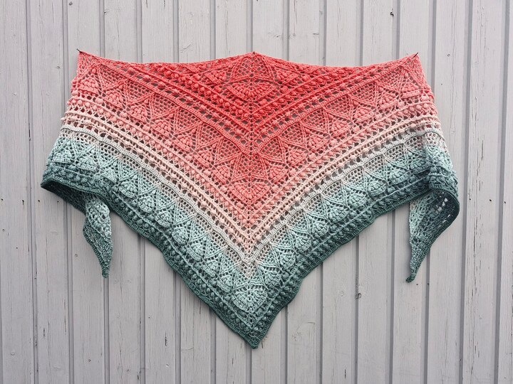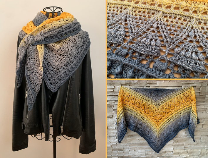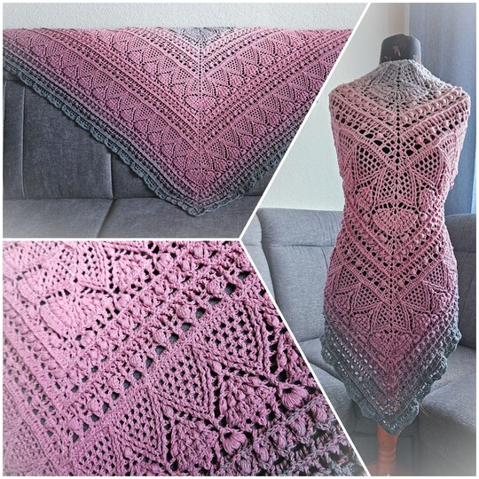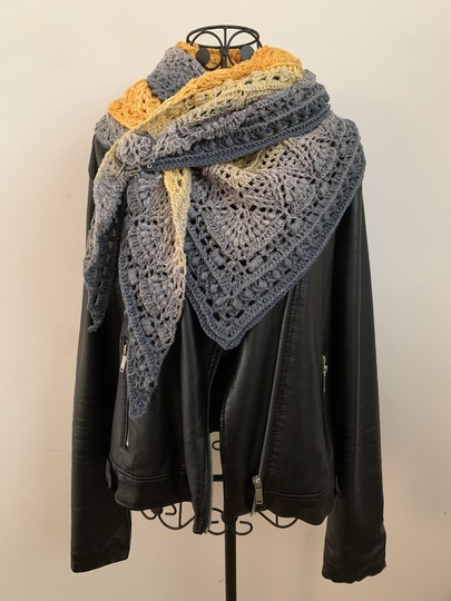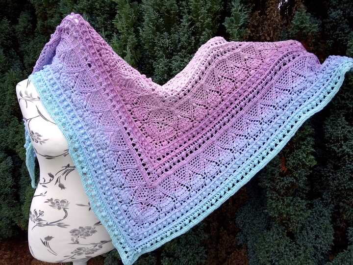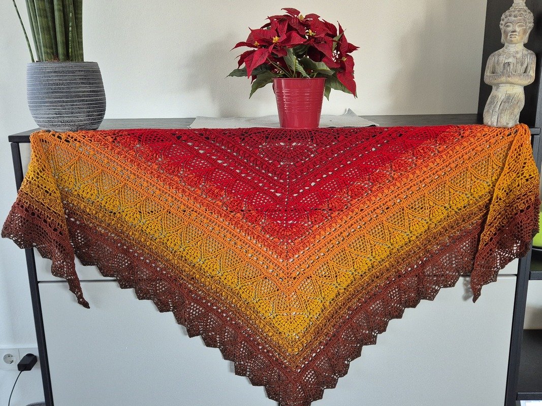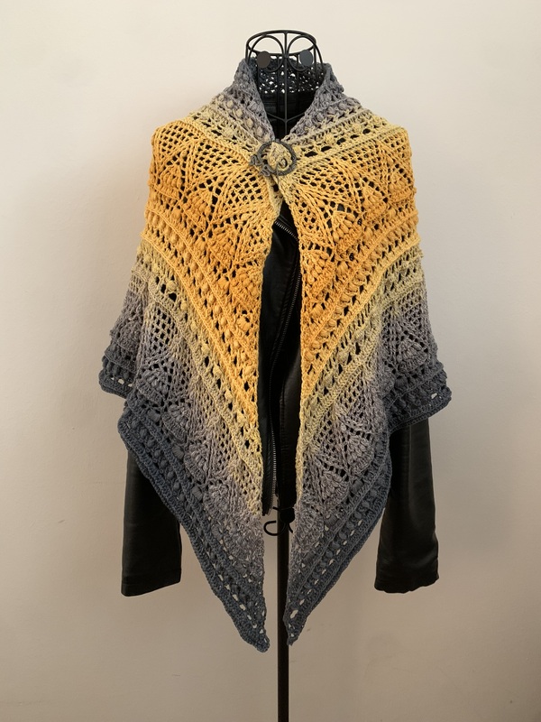 Elysia is a fantastically beautiful, playful, deep triangular shawl that impresses with its beautiful fan pattern. The different patterns ensure that crocheting never gets boring, making it an eye-catcher and wonderful accessory for every season.